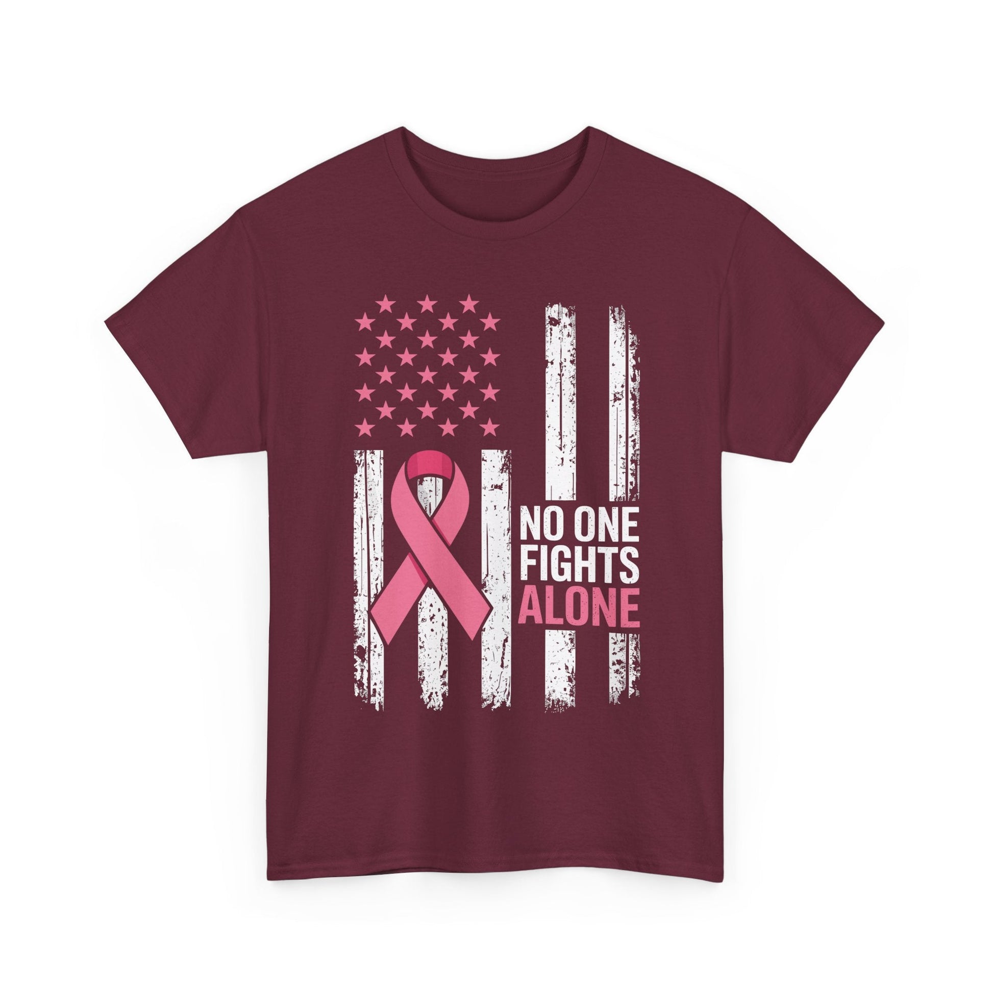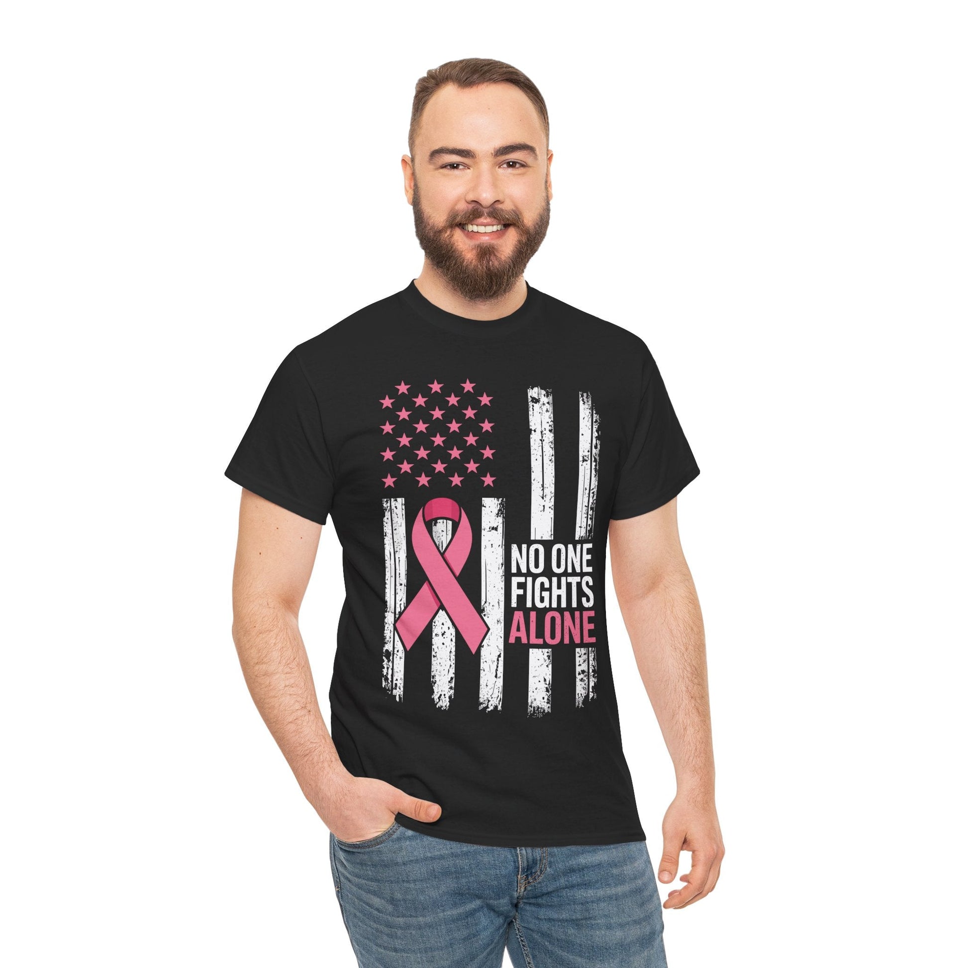 No One Fights Breast Cancer Alone American Flag Pink Ribbon T-Shirt
