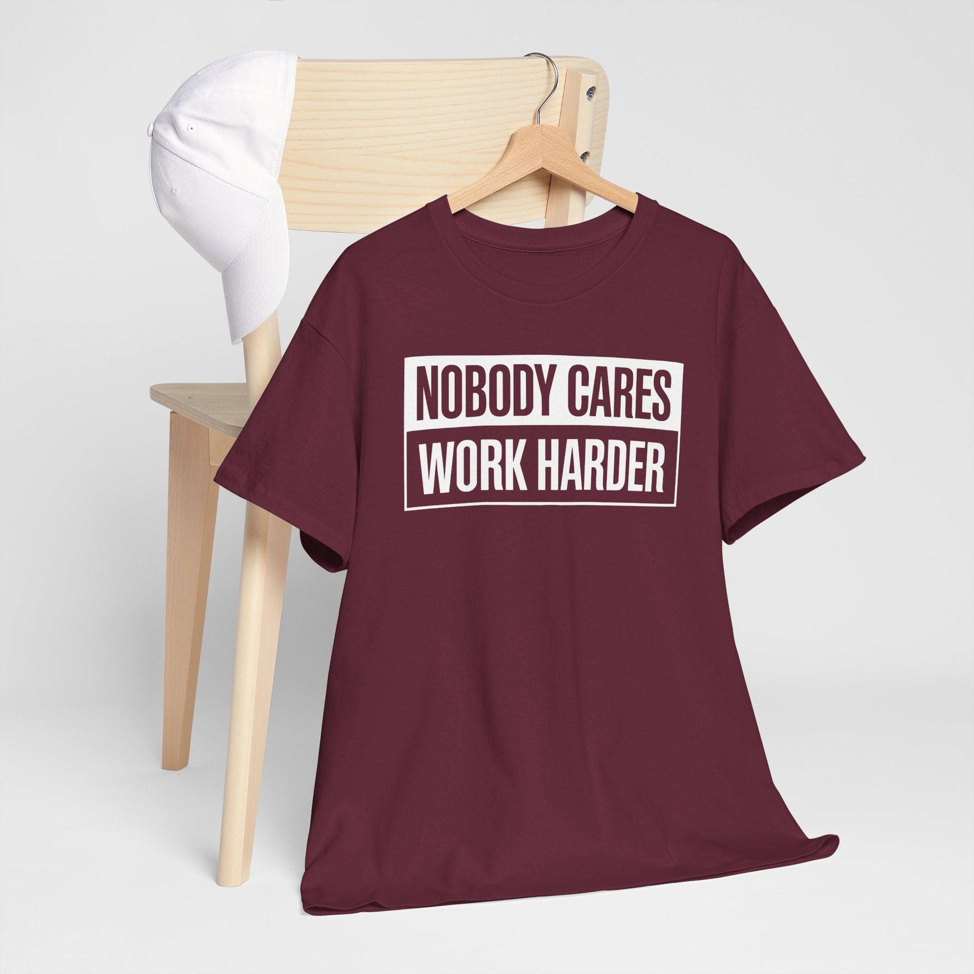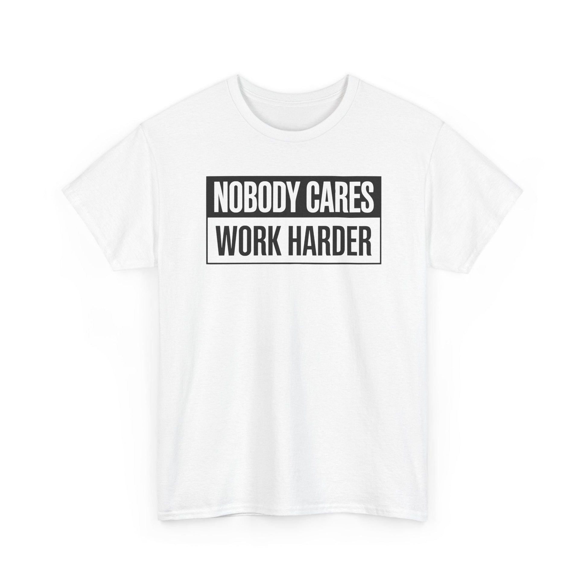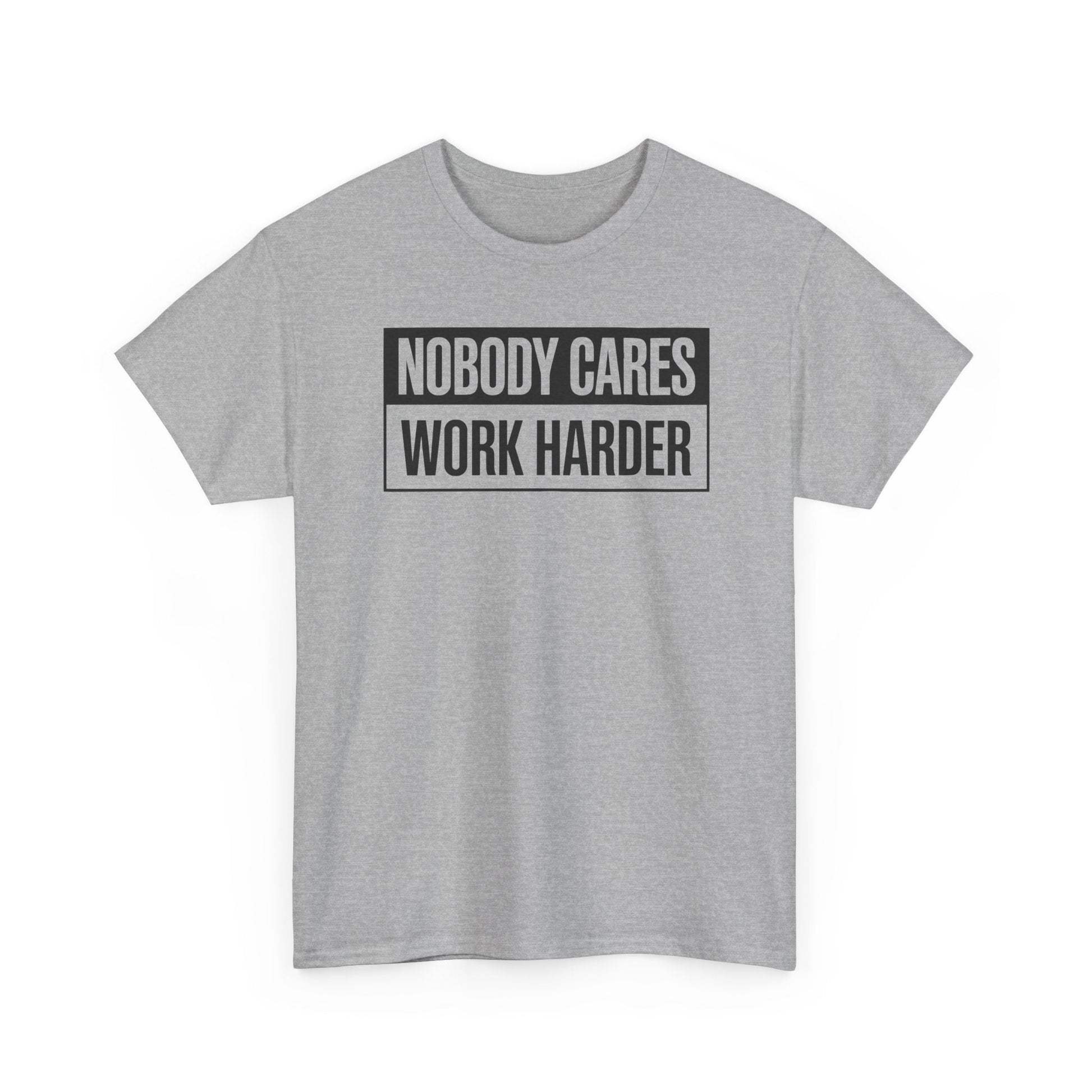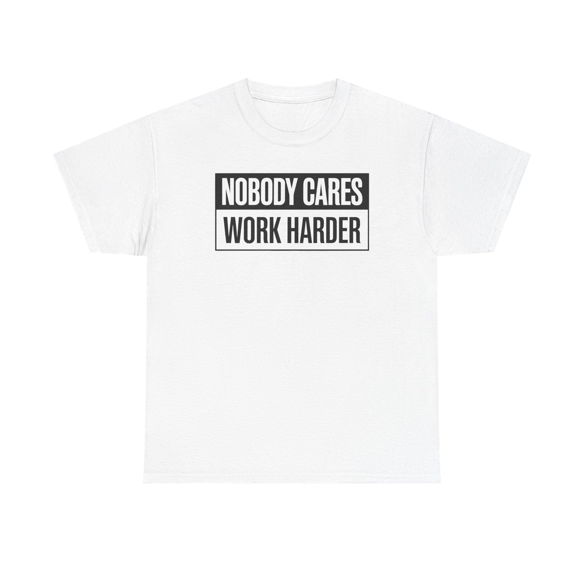 Get motivated with this 'Nobody Cares Work Harder' fitness workout gym gift T-Shirt. Perfect for individuals dedicated to their fitness journey and looking to stay inspired. Ideal for gym-goers, fitness enthusiasts, and athletes. Relevant for birthdays, New Year's resolutions, and fitness milestones.