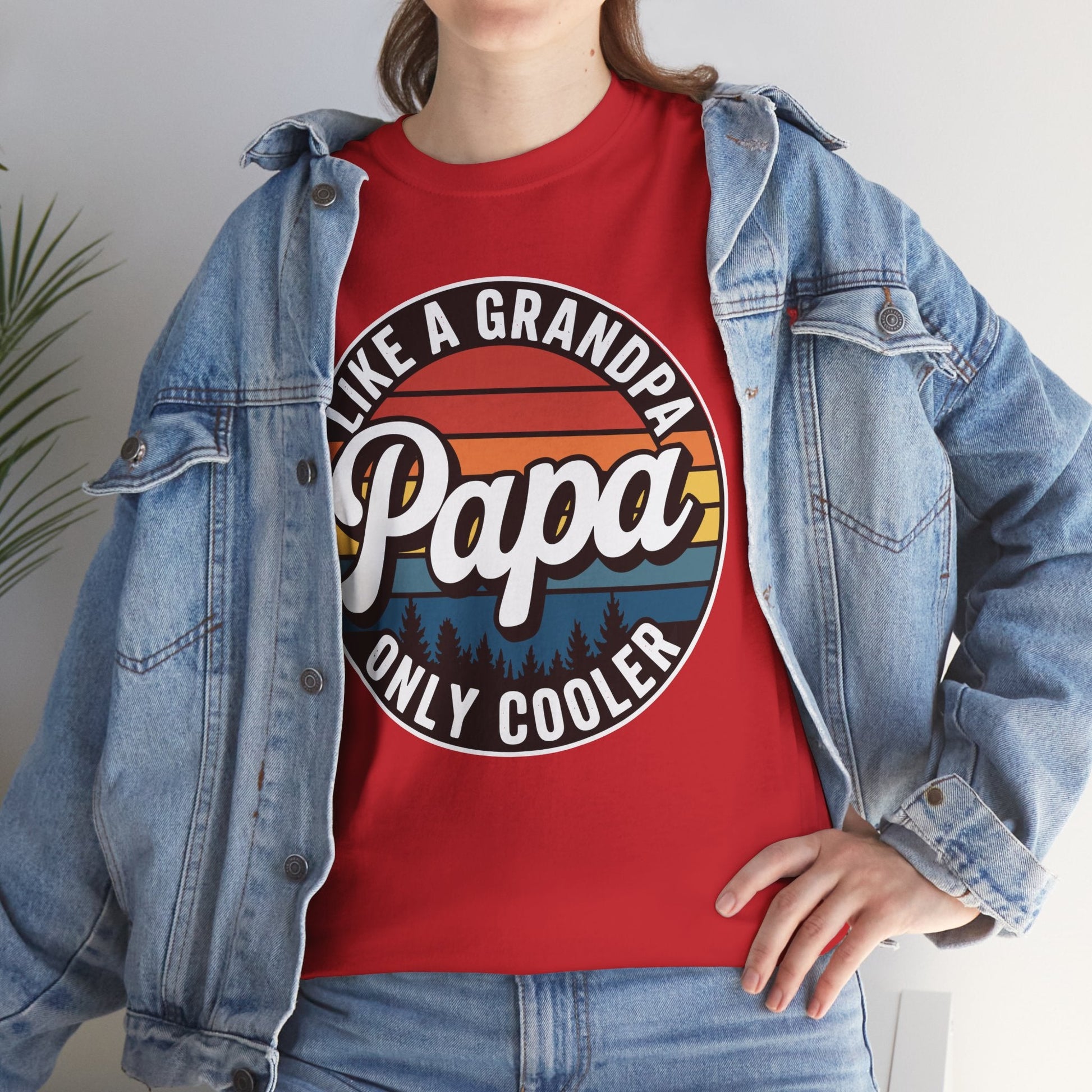 Ever met a grandpa who knows how to rock a grill, tell dad jokes like a pro, and still be the coolest guy in the room? That’s not just any grandpa that’s Papa. Whether it’s for Father’s Day, a birthday, or just because he deserves the spotlight, this "Papa Like a Grandpa Only Cooler" T-shirt is the perfect gift to show him how legendary he really is.Too often, awesome papas get lumped into the generic “grandpa” category boring sweaters, outdated socks, and mugs that say “#1 Grandpa.” But here’s the problem: your Papa isn’t boring. He’s full of personality, humor, and swag. He deserves a shirt that reflects exactly that.