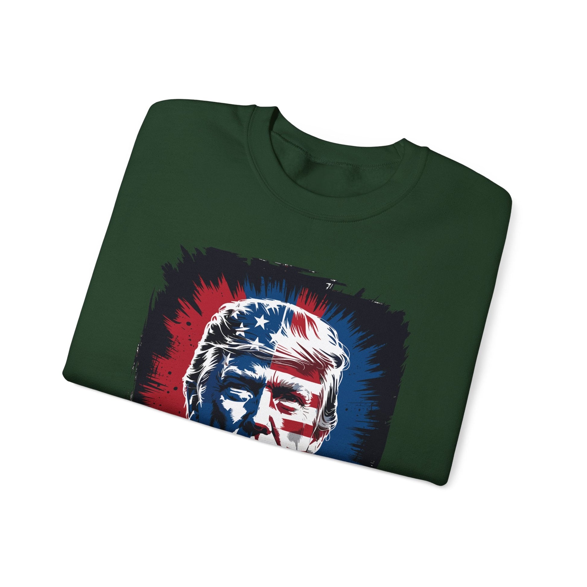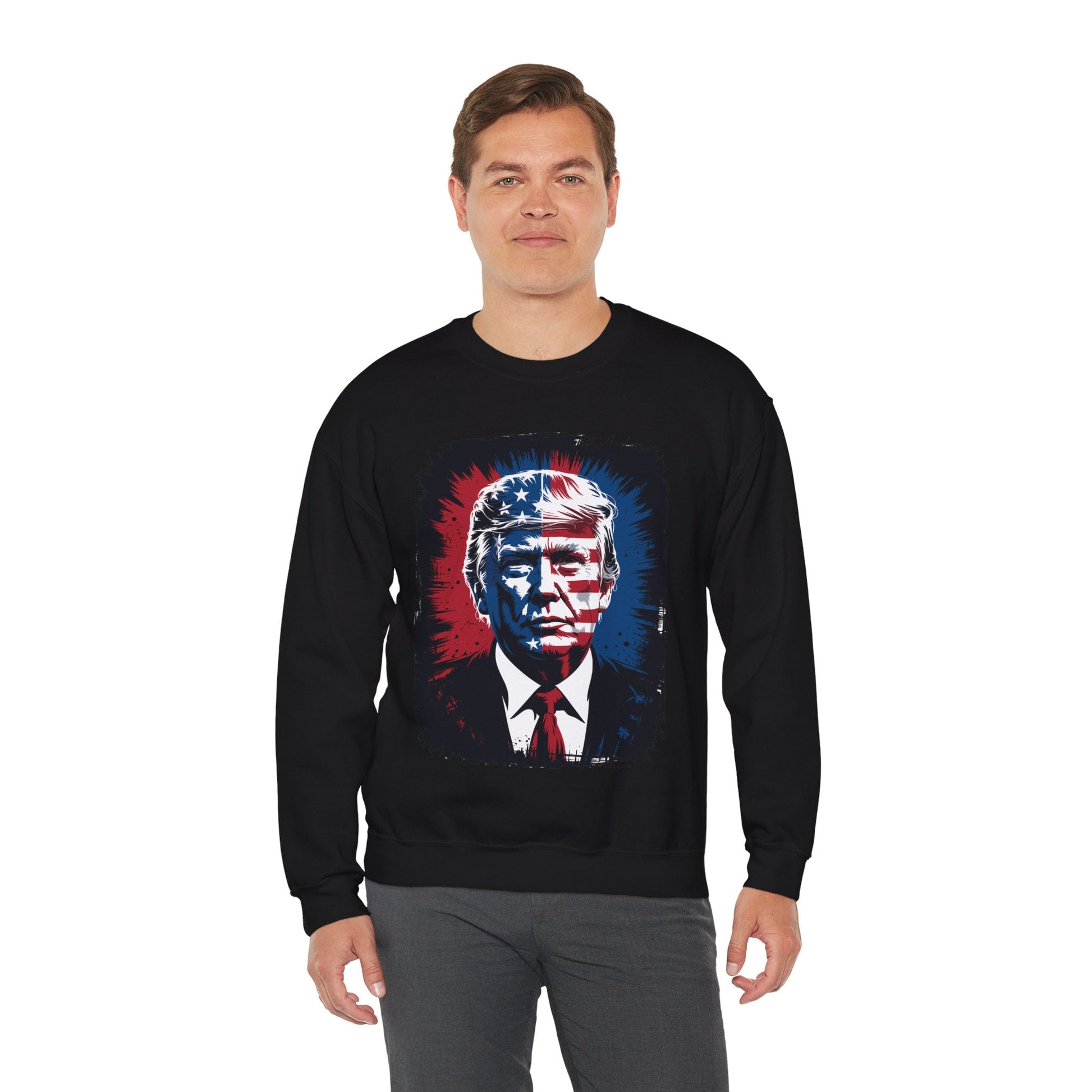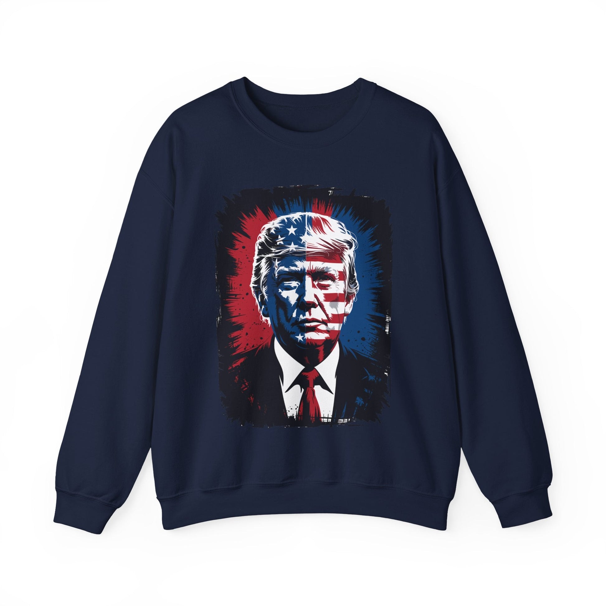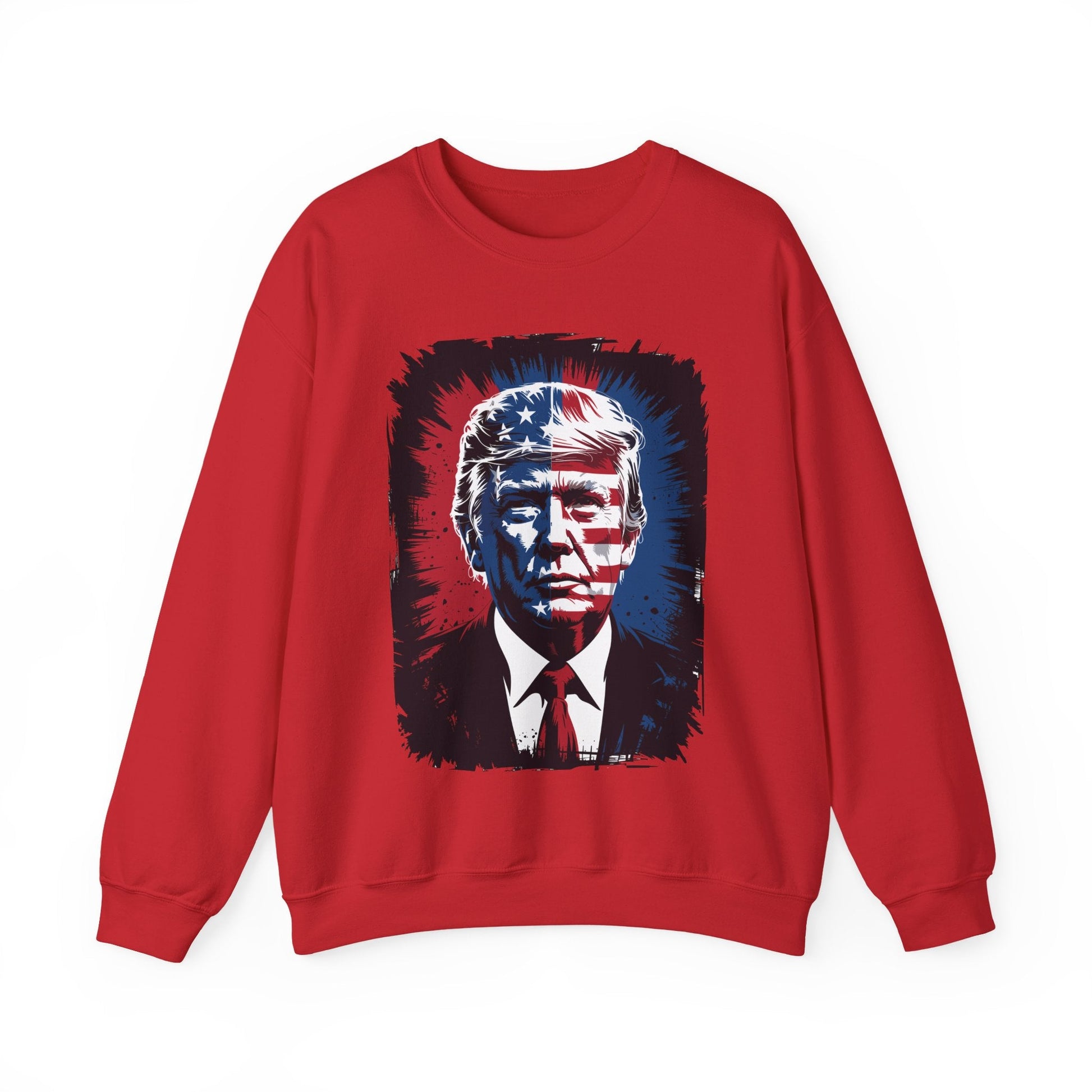 · Iconic Trump Portrait Design: Featuring a vivid graphic of President Donald Trump with American flag accents, this sweatshirt makes your stance clear and your style unforgettable.