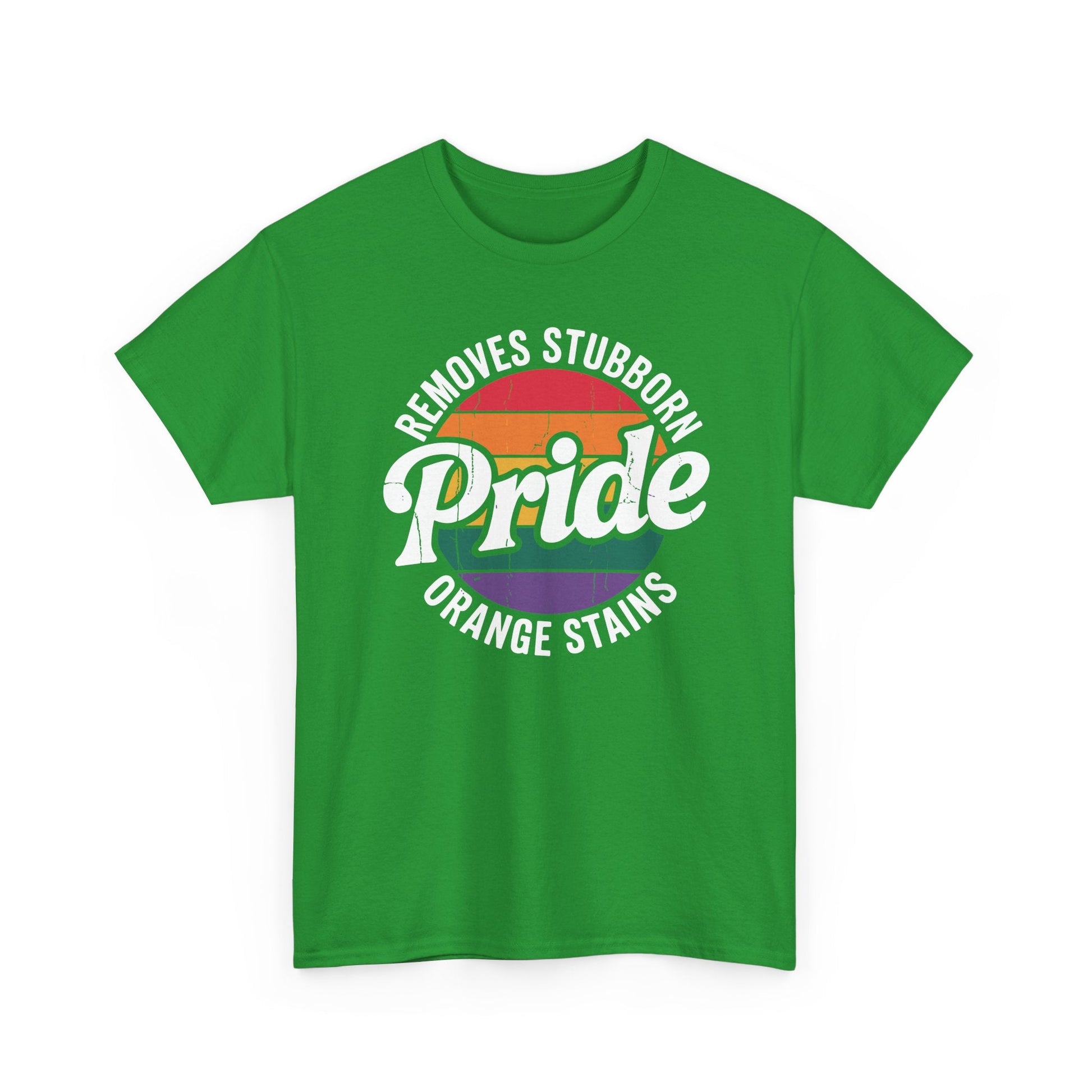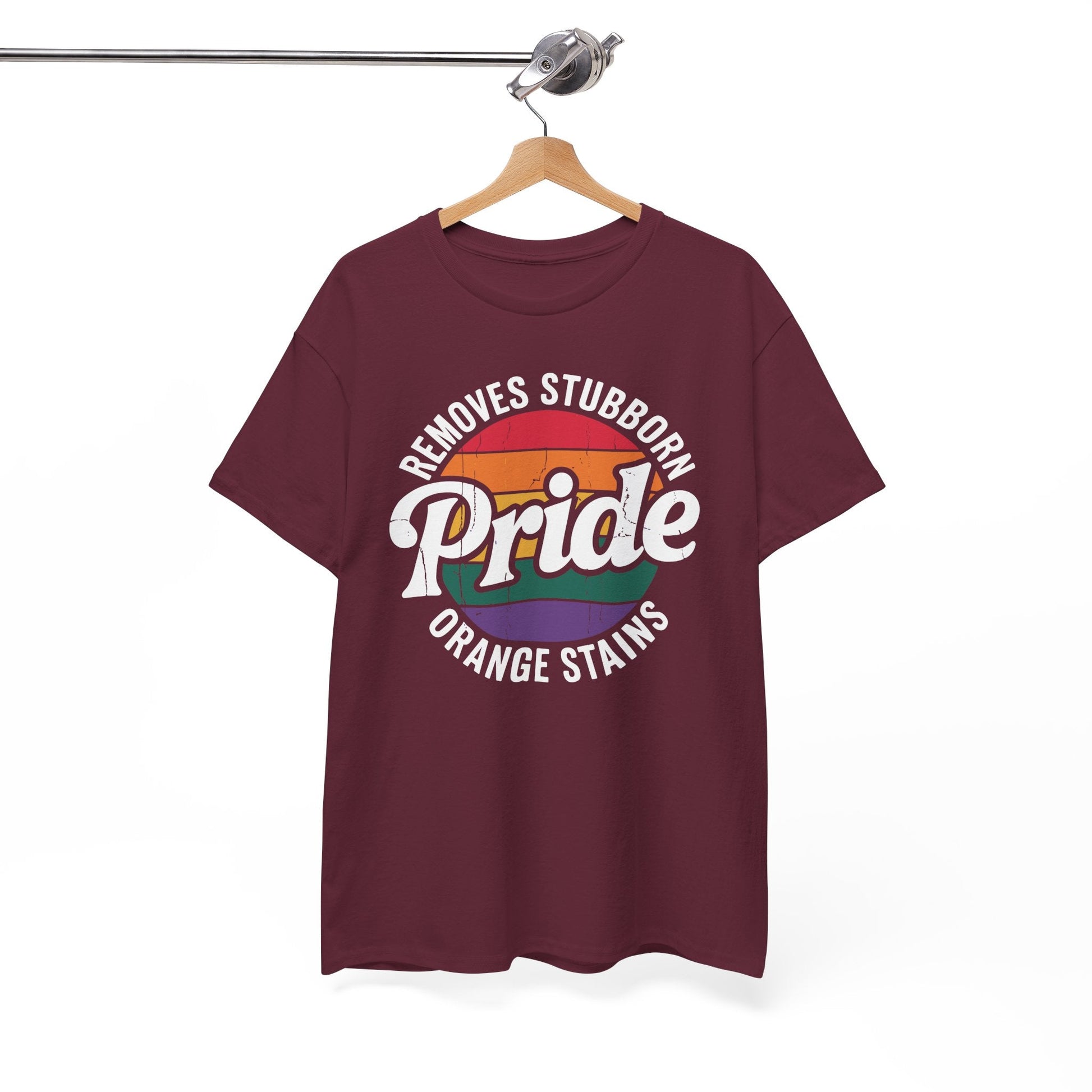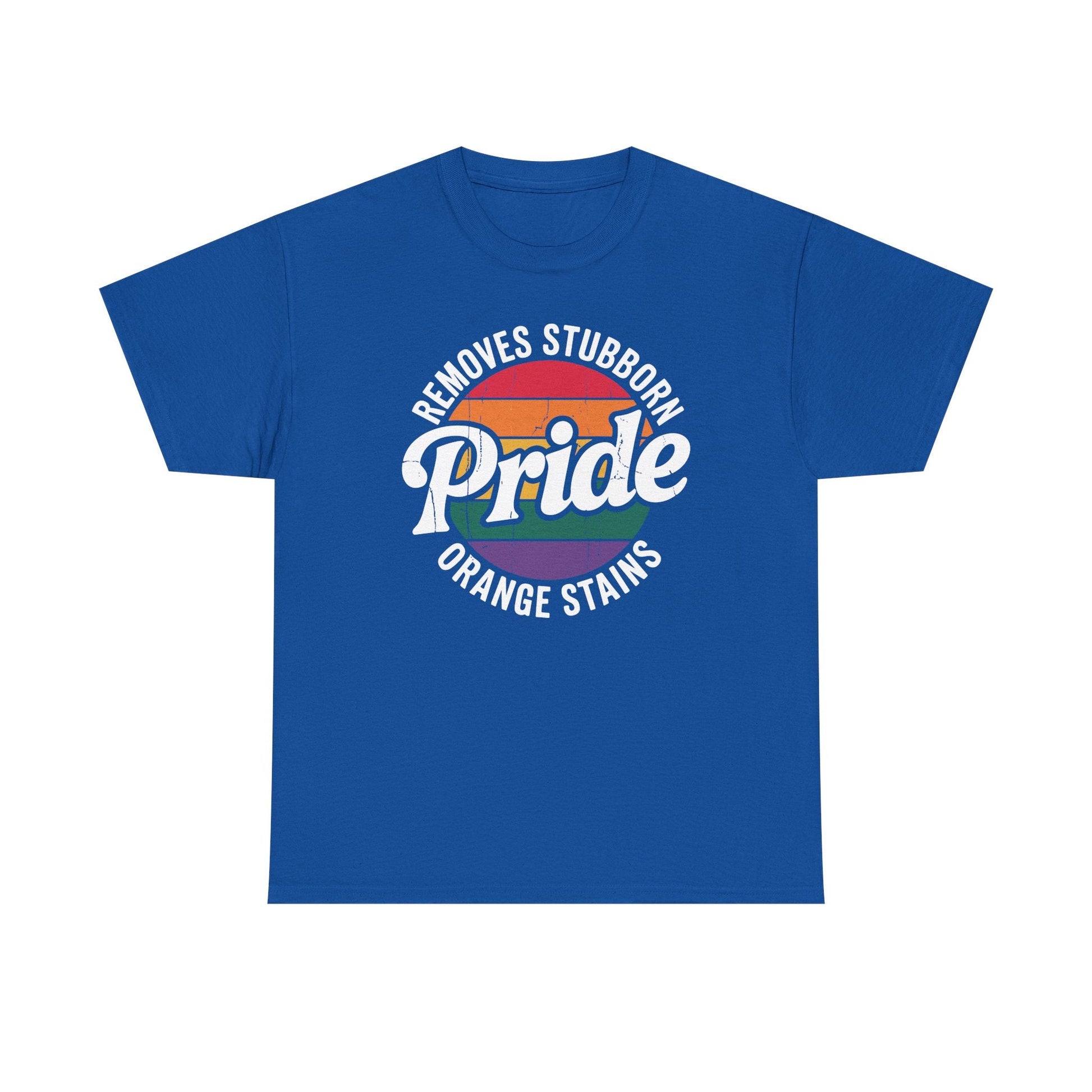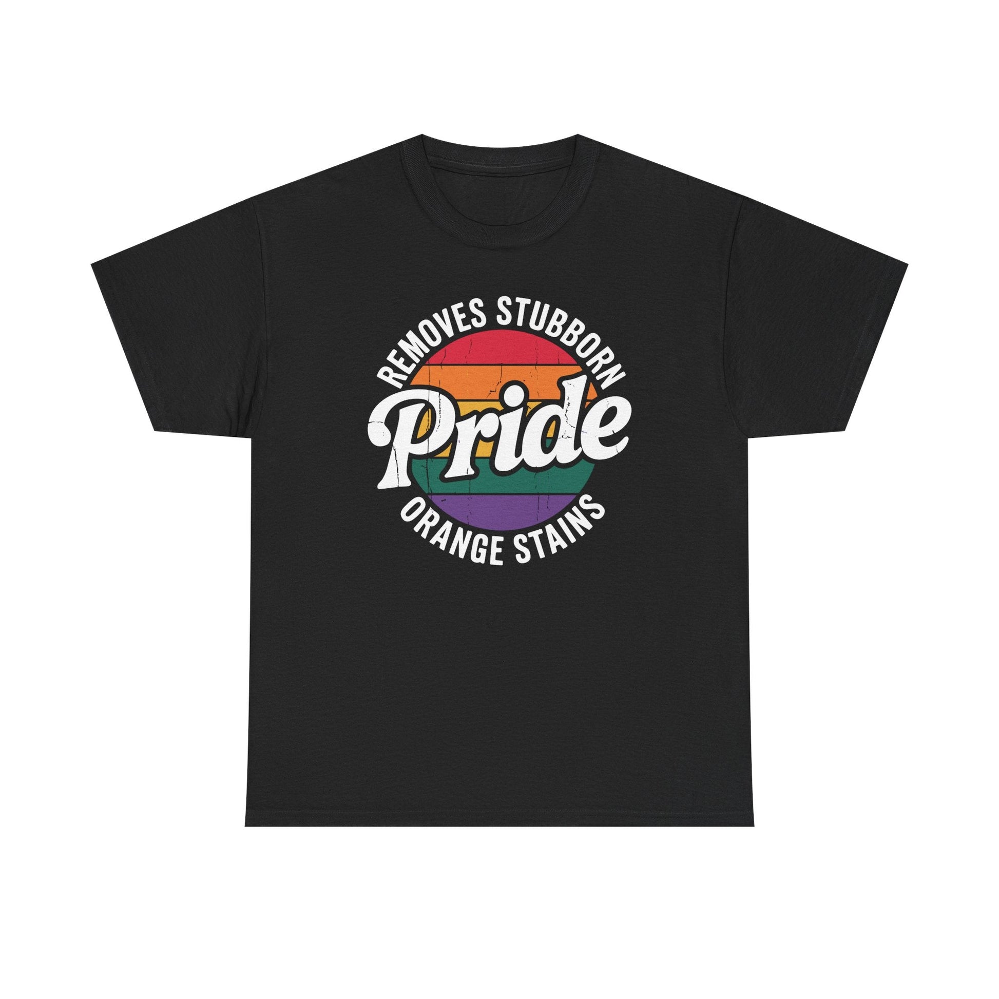 This Resist Trump Remove Stubborn Orange Stains Pride Month LGBTQ T-Shirt gives a bold and expressive vibe, perfect for those passionate about LGBTQ rights and political activism. This tee is suitable for adults and is ideal for Pride Month celebrations, protests, rallies, and casual wear.