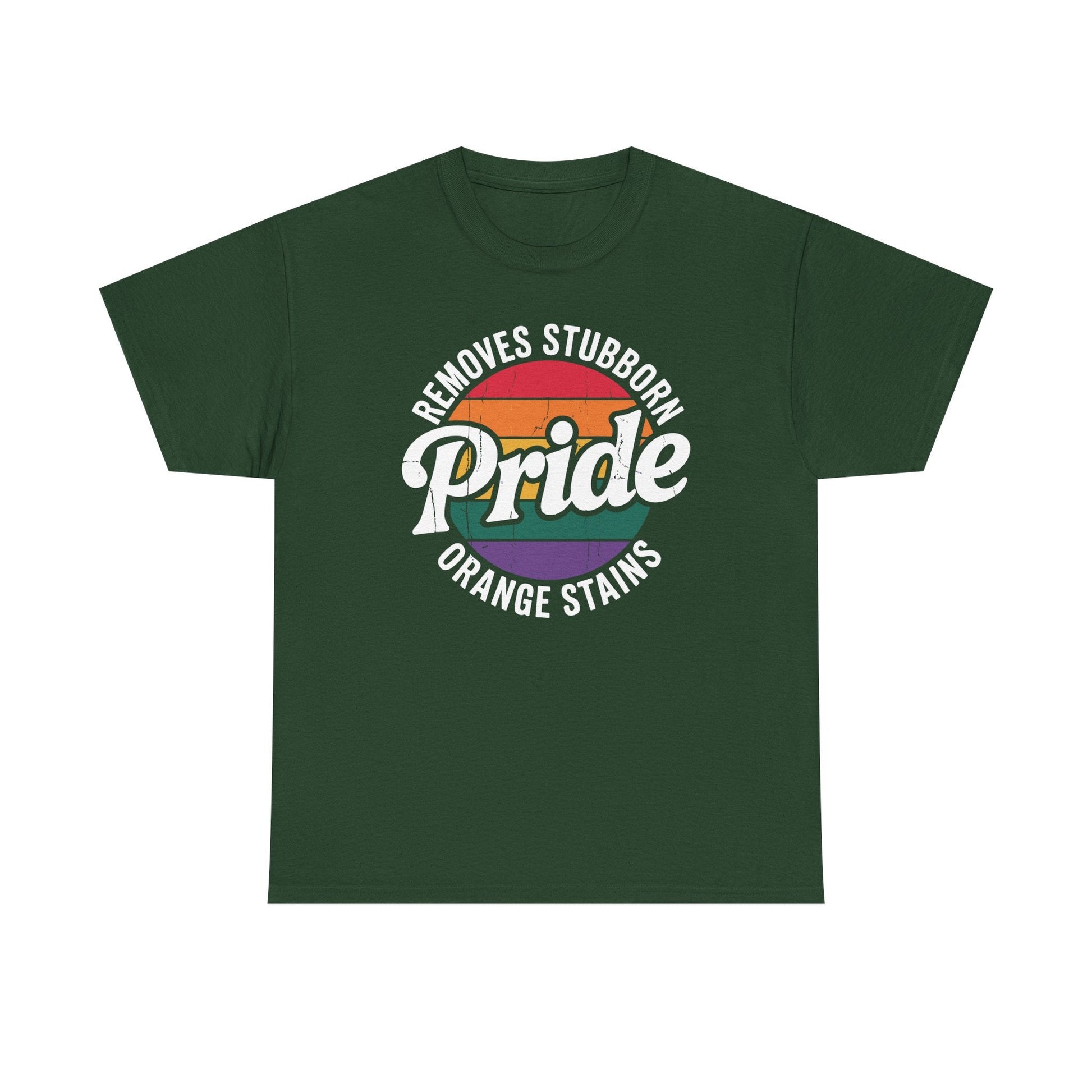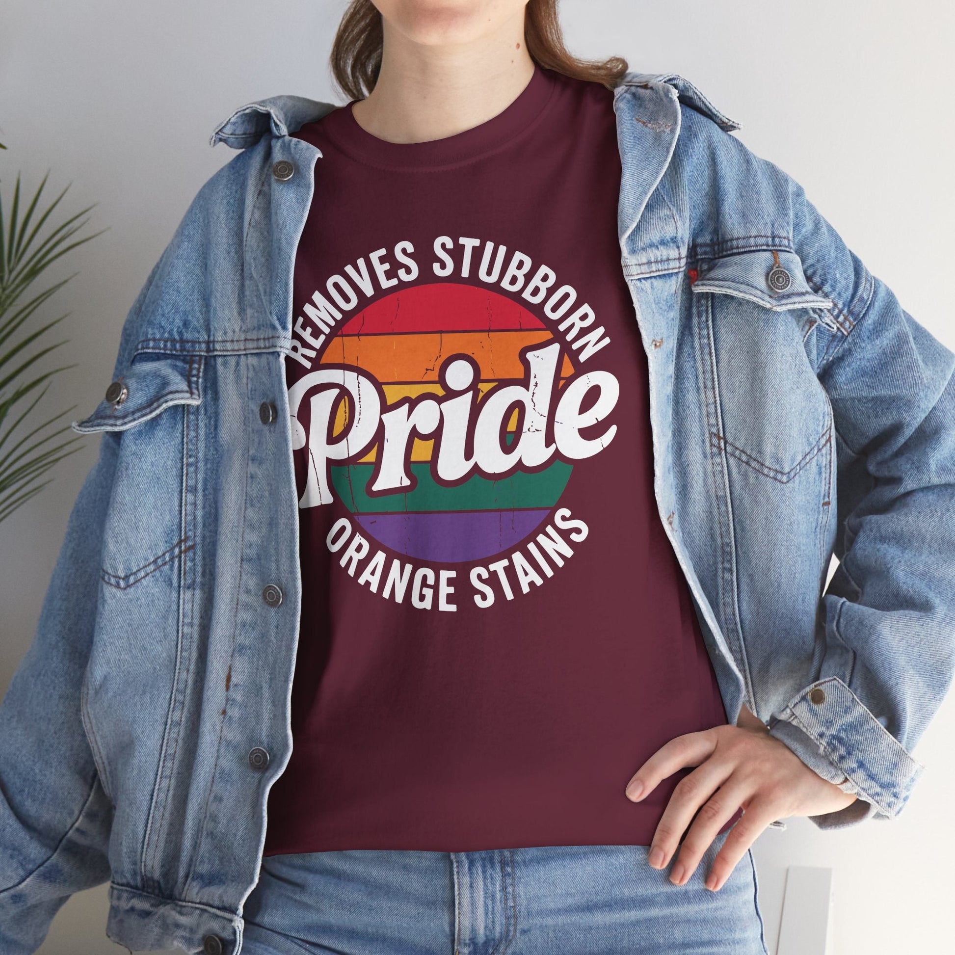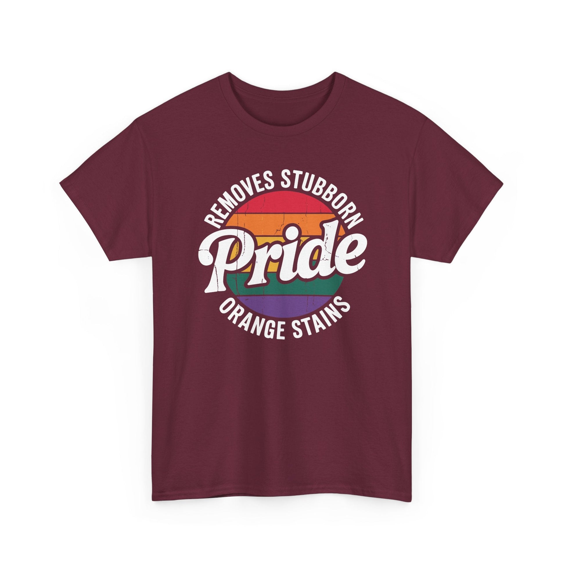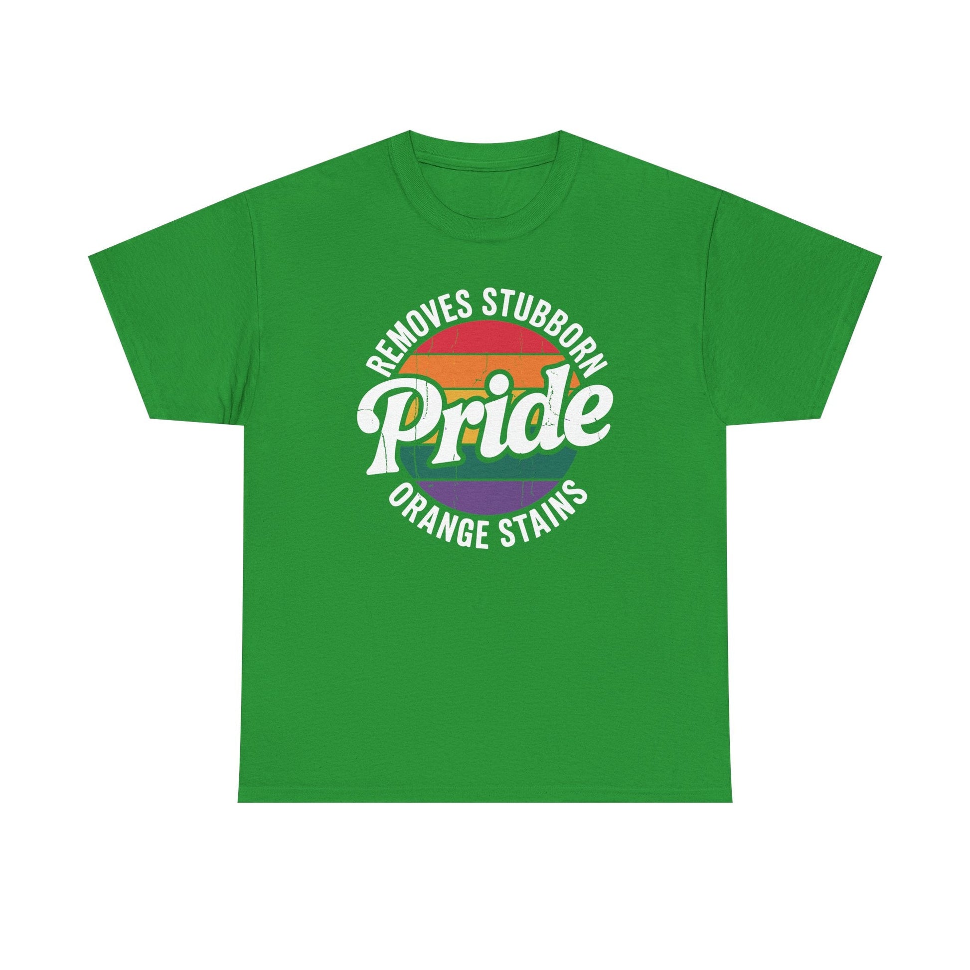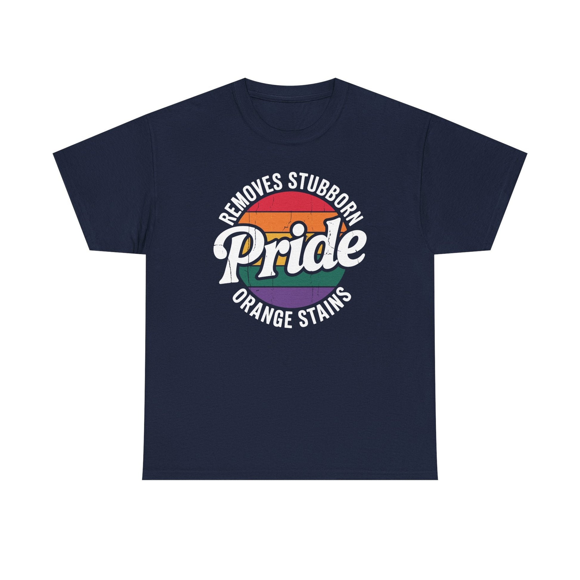 This Resist Trump Remove Stubborn Orange Stains Pride Month LGBTQ T-Shirt gives a bold and expressive vibe, perfect for those passionate about LGBTQ rights and political activism. This tee is suitable for adults and is ideal for Pride Month celebrations, protests, rallies, and casual wear.