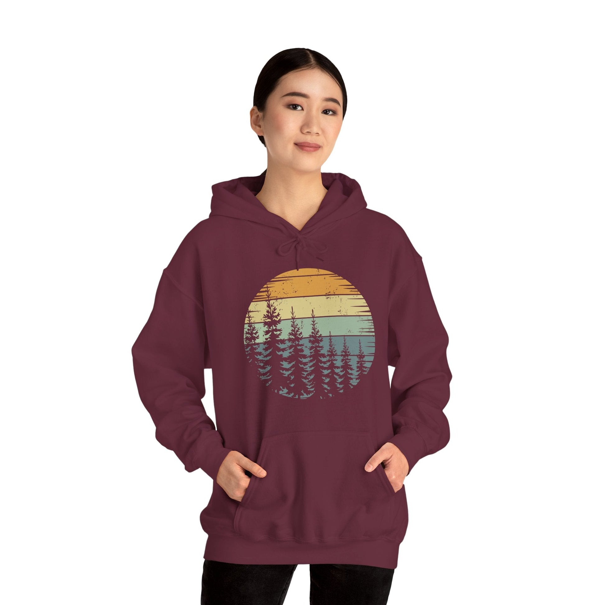 Retro Forest Trees Outdoors Nature Vintage Graphic Hoodie