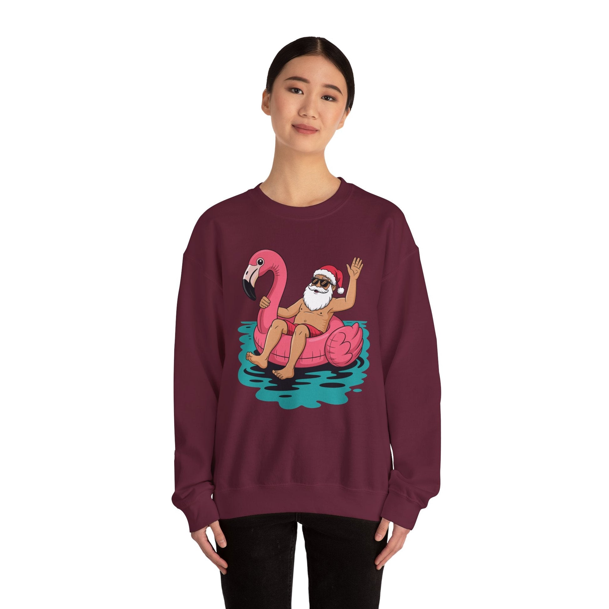 Santa Flamingo Floatie Funny Christmas In July Summer Xmas Sweatshirt