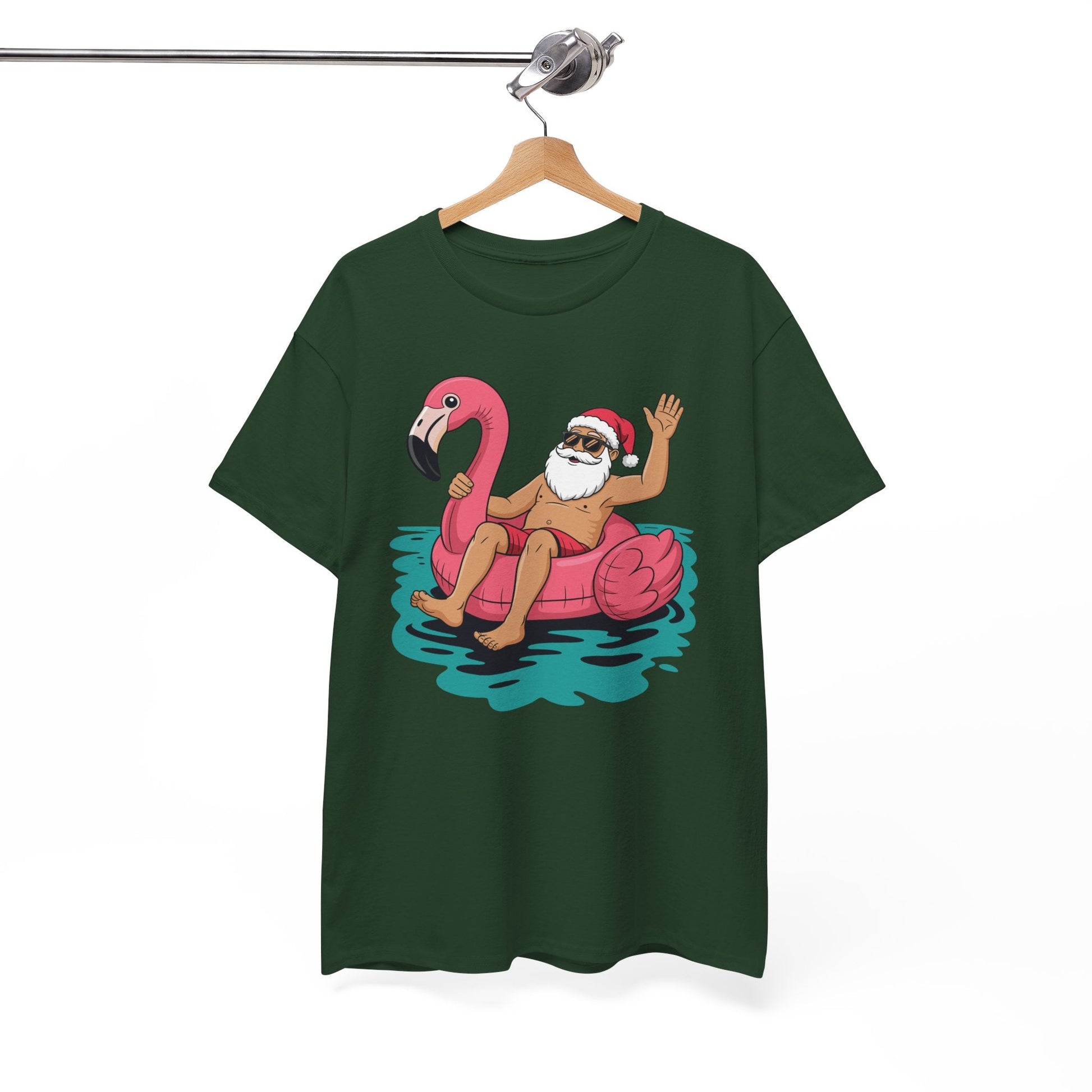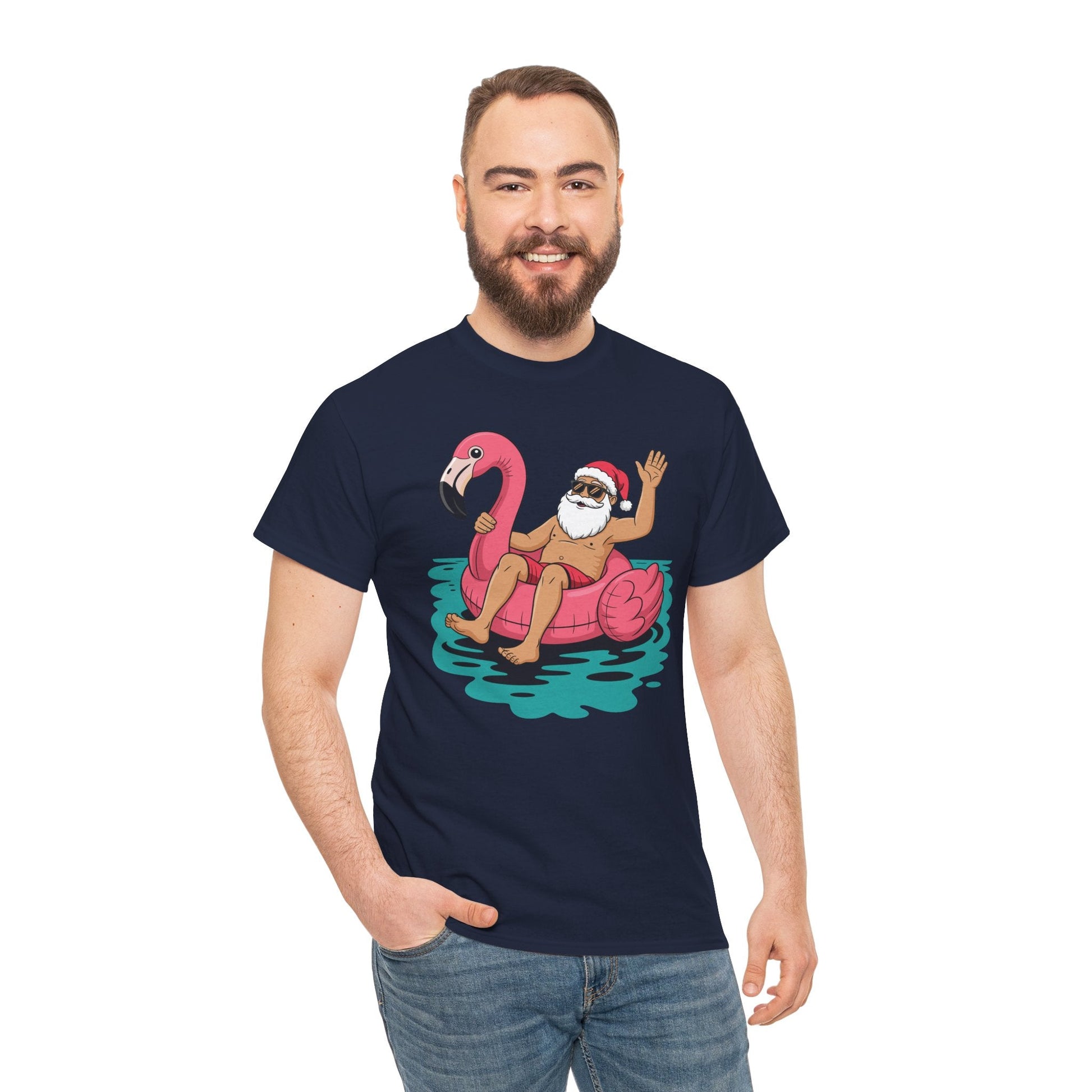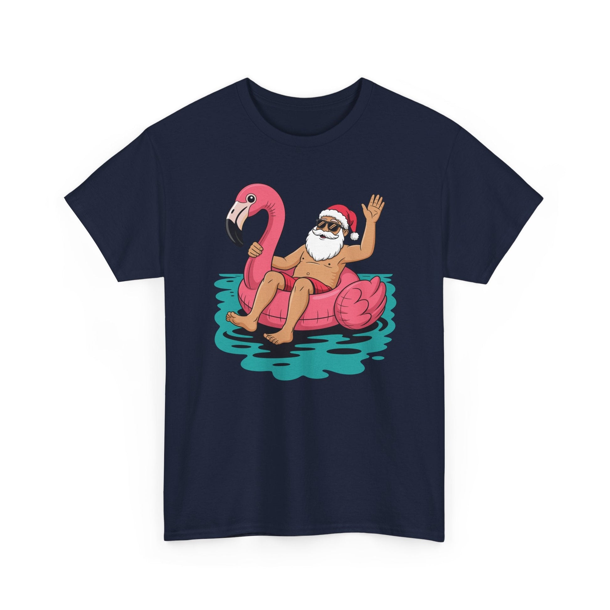 Santa Flamingo Floatie Funny Christmas In July Summer Xmas T-Shirt