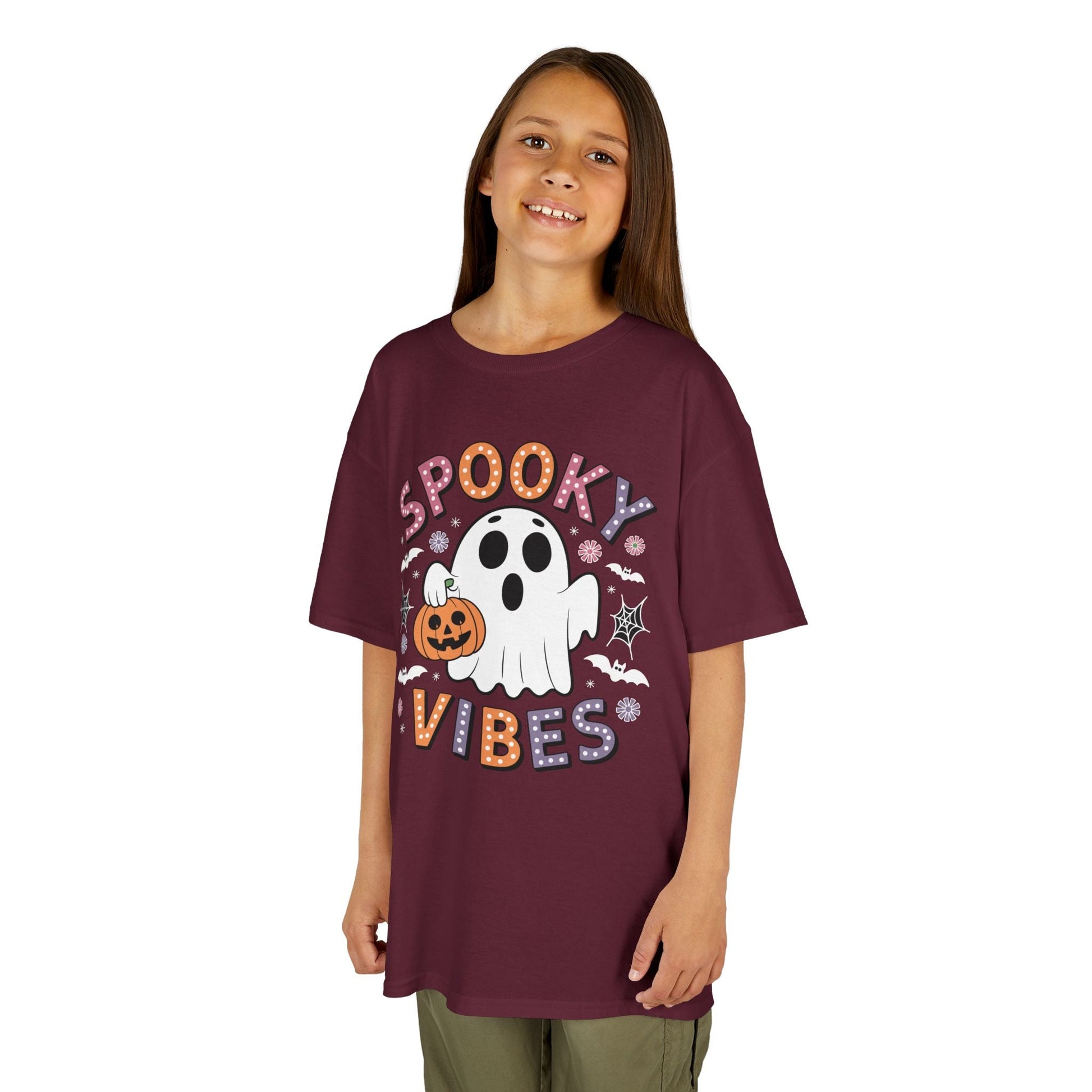 Spooky Vibes Ghost Retro Groovy Halloween Kids T-Shirt