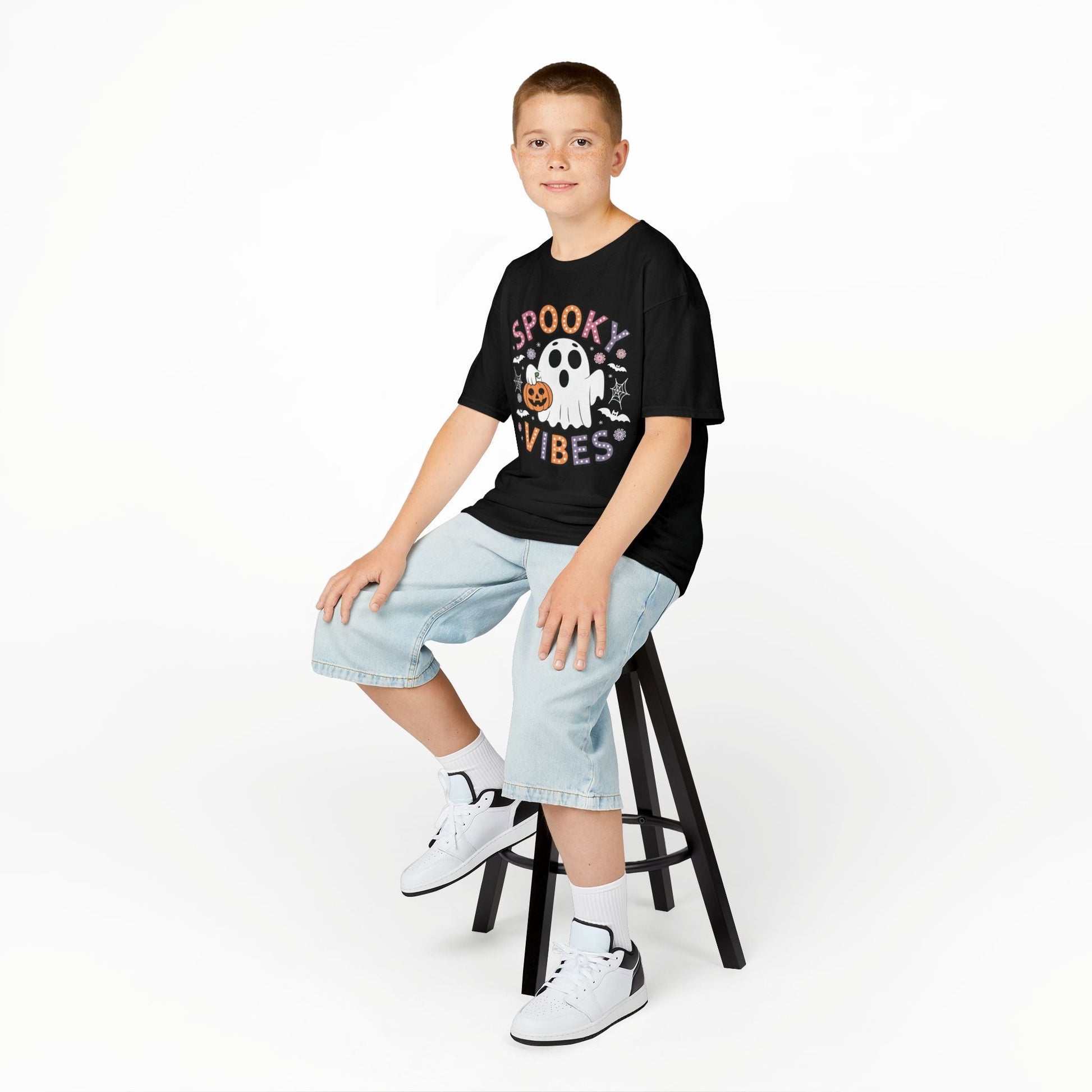 · Retro Ghost Design: Features a groovy ghost with vintage flair—perfect for kids who love Halloween and playful fashion