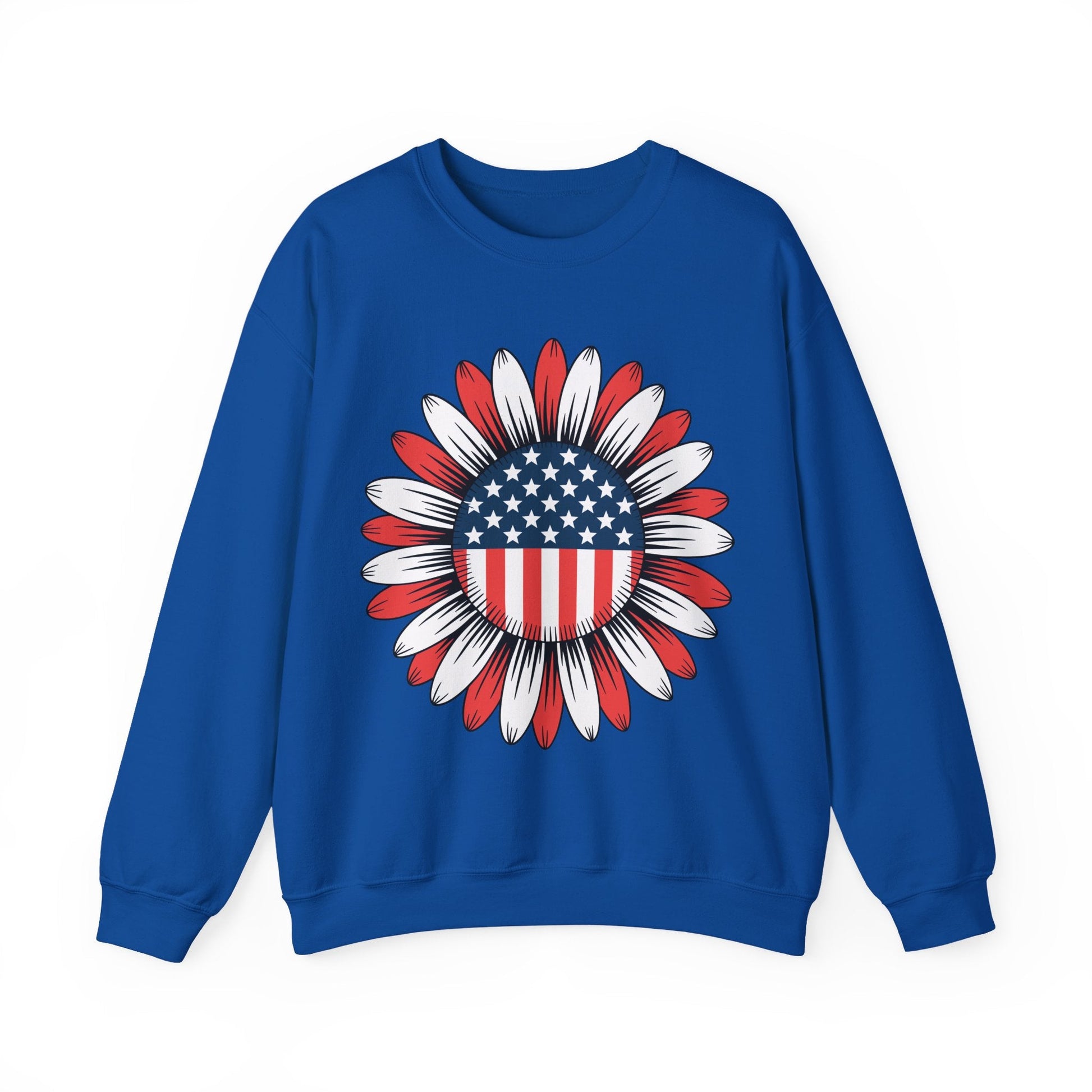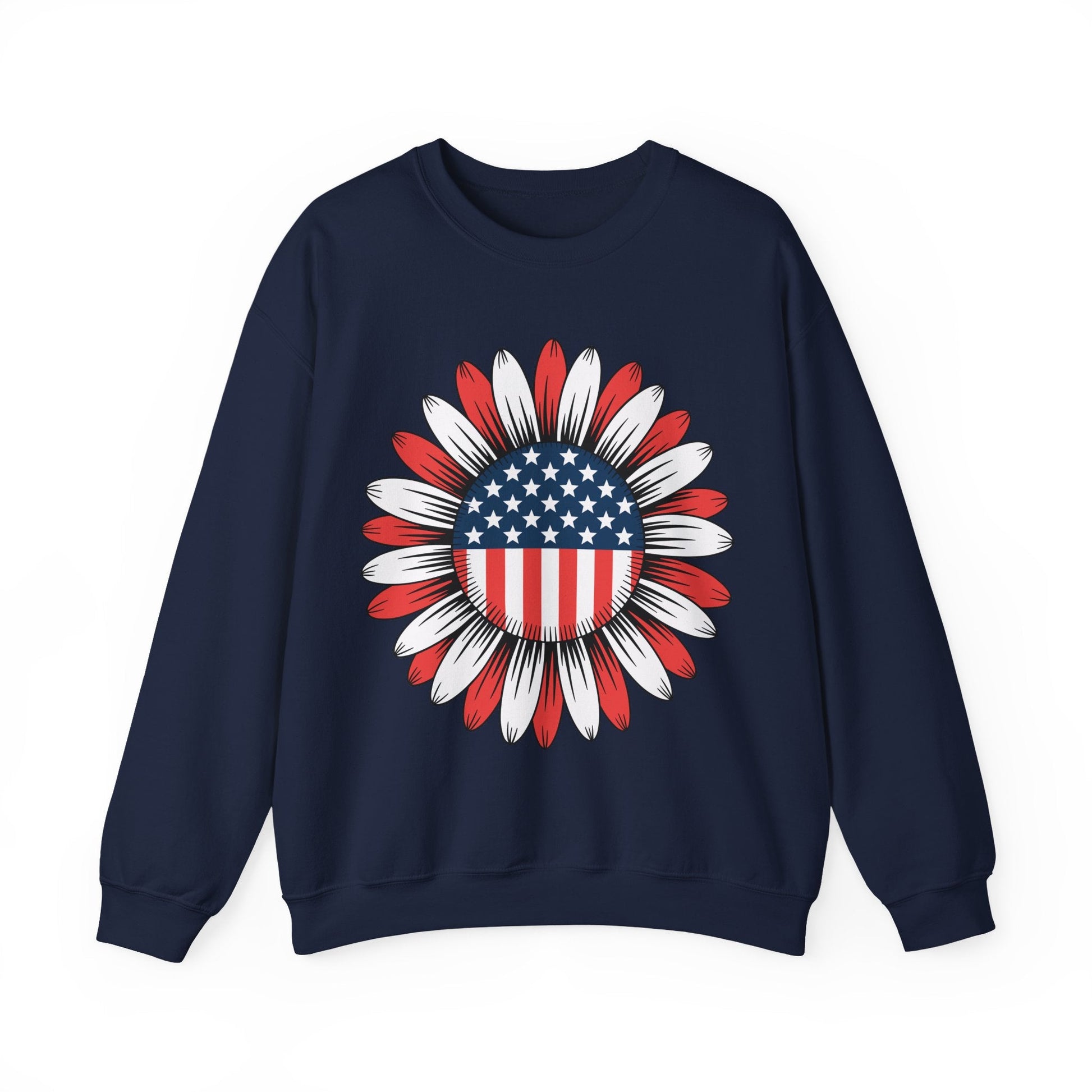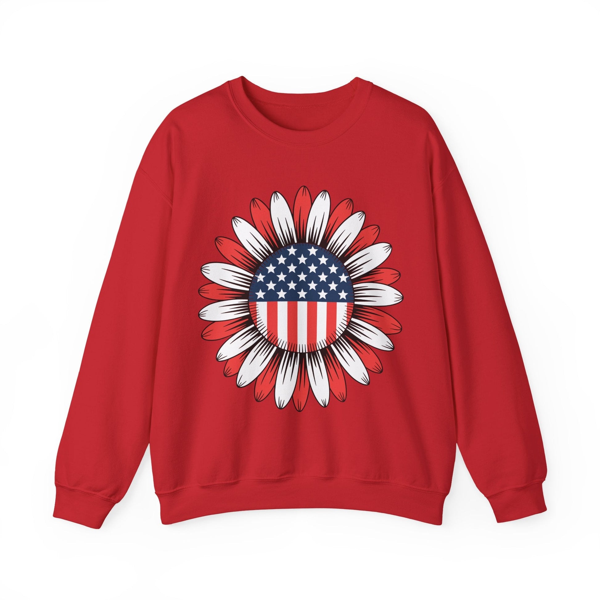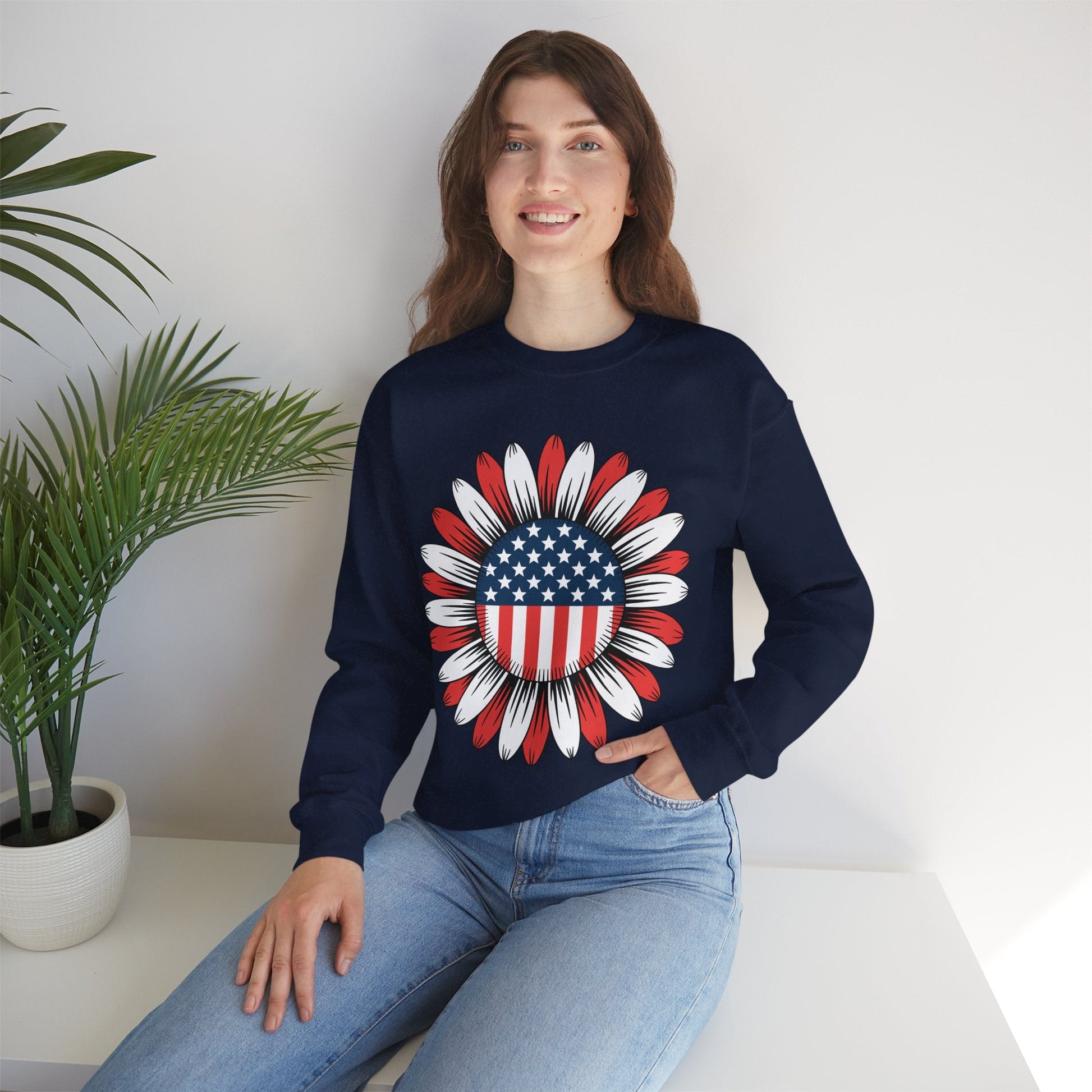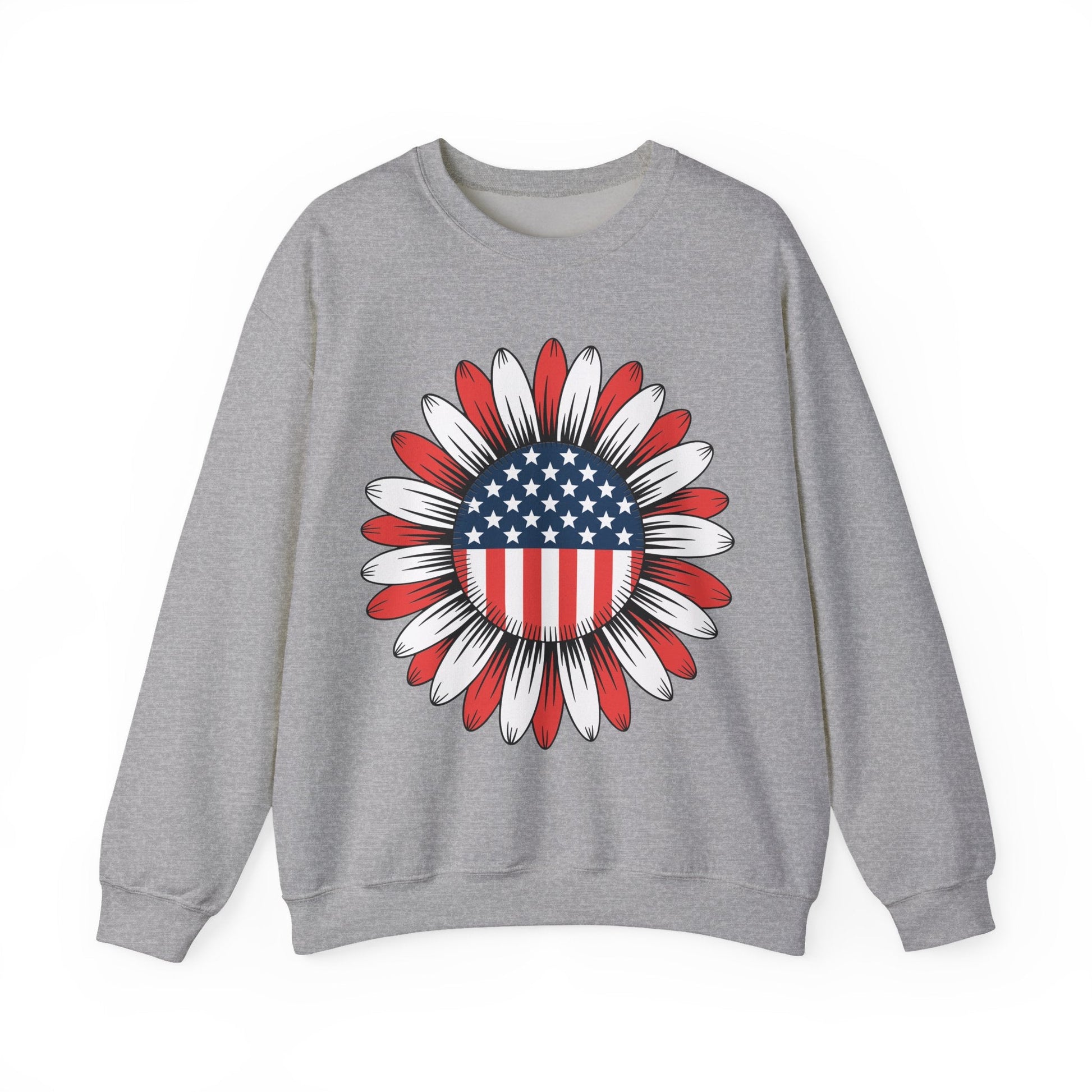 Sunflower American Flag 4th of July Women Men Merica USA Sweatshirt