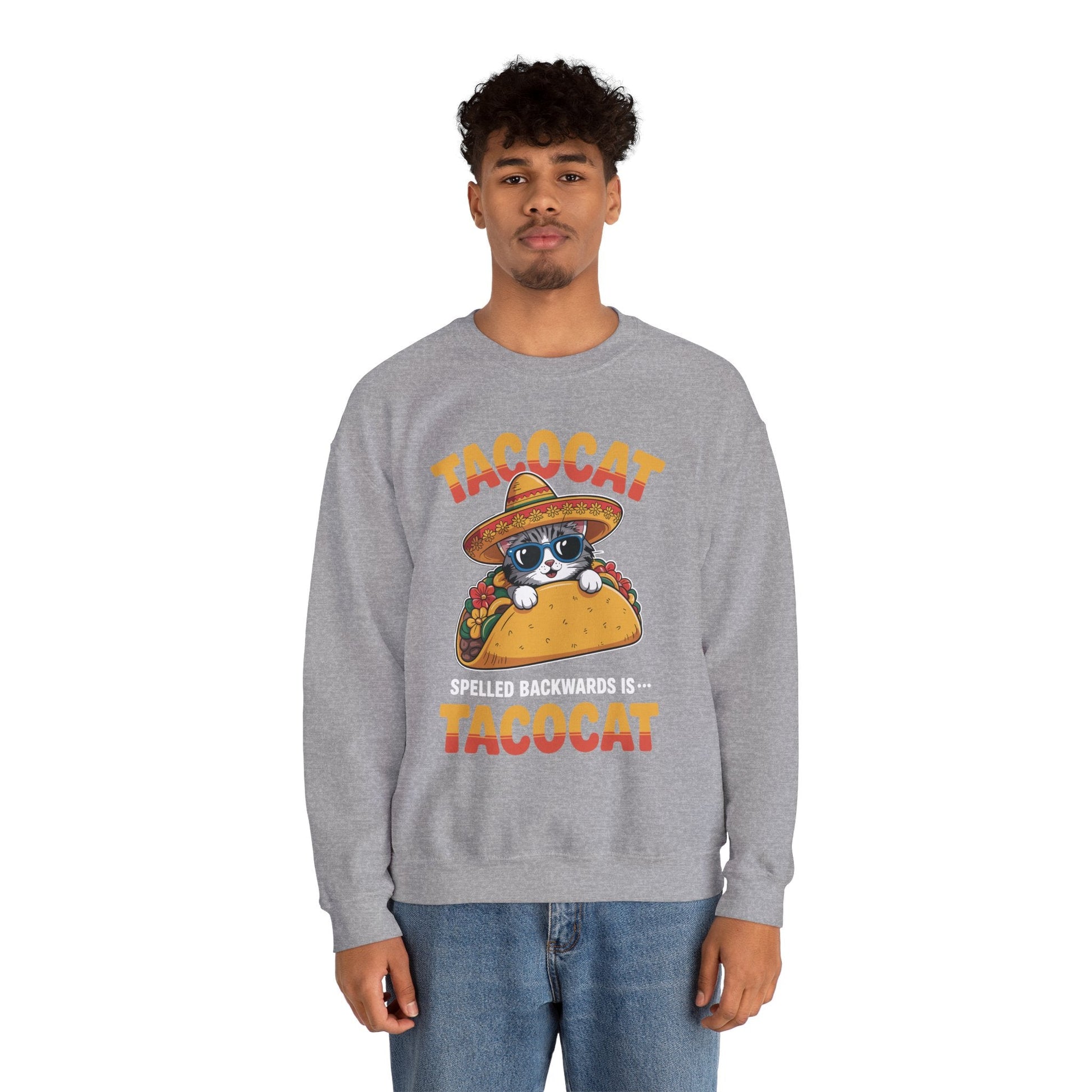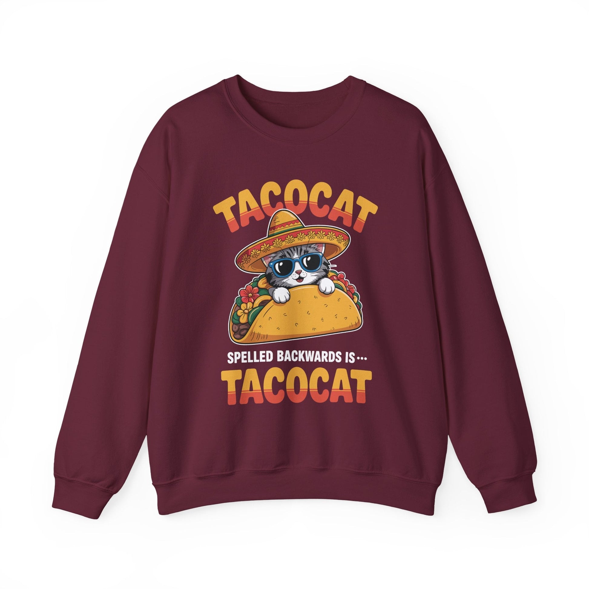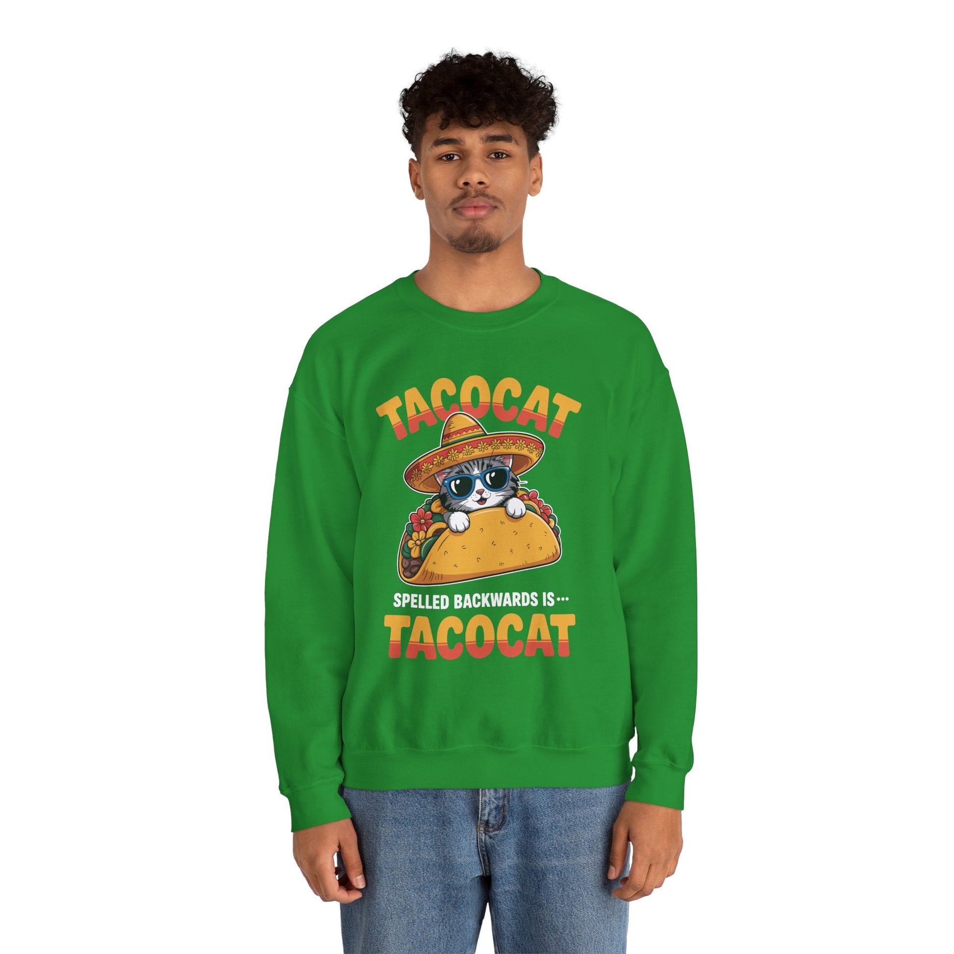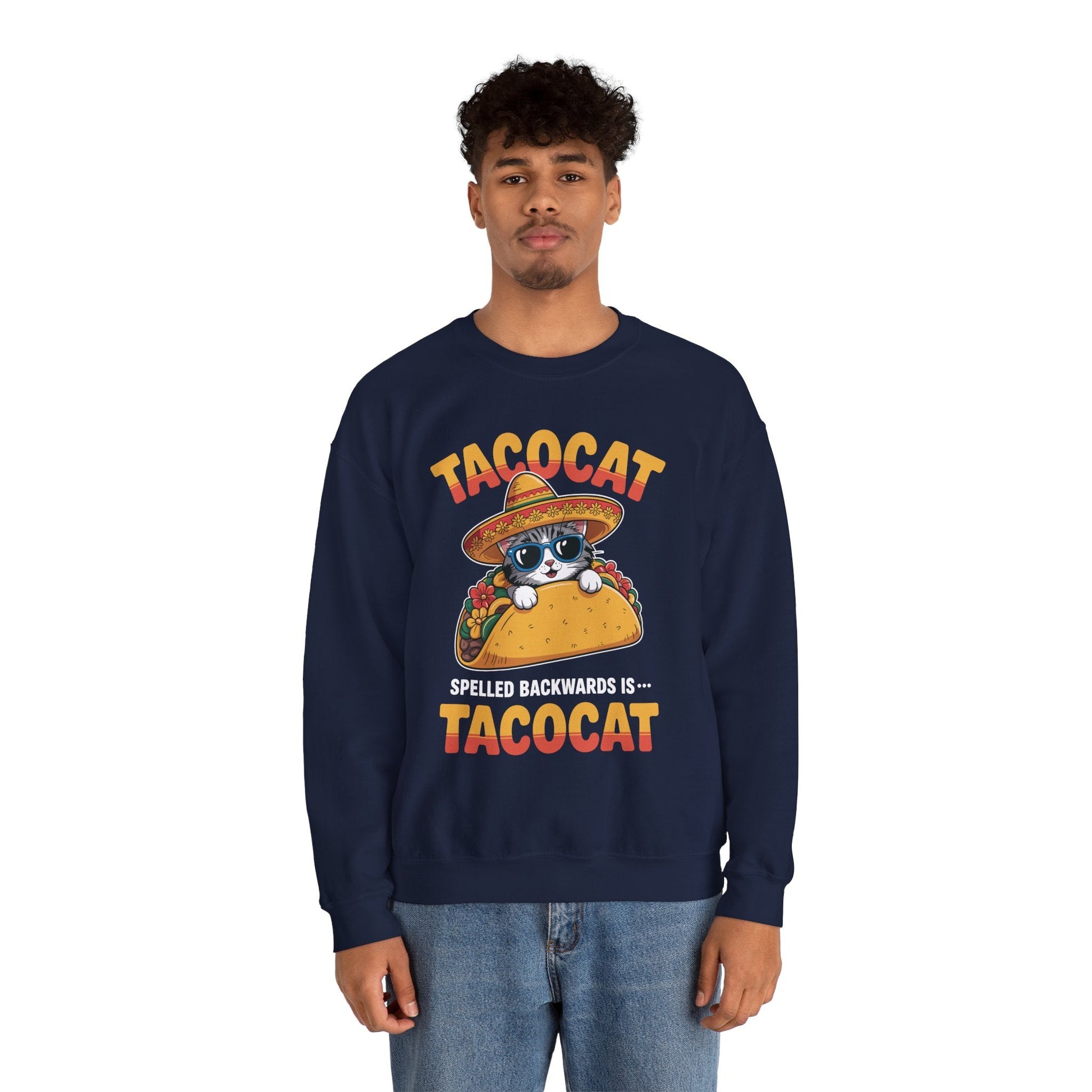 This Tacocat Spelled Backwards Taco Cat Cinco De Mayo Sweatshirt is perfect for those who love quirky and fun designs. Celebrate Cinco De Mayo in style with this cozy sweatshirt, suitable for both men and women. It's ideal for casual wear during festive occasions and Taco Tuesday gatherings.
