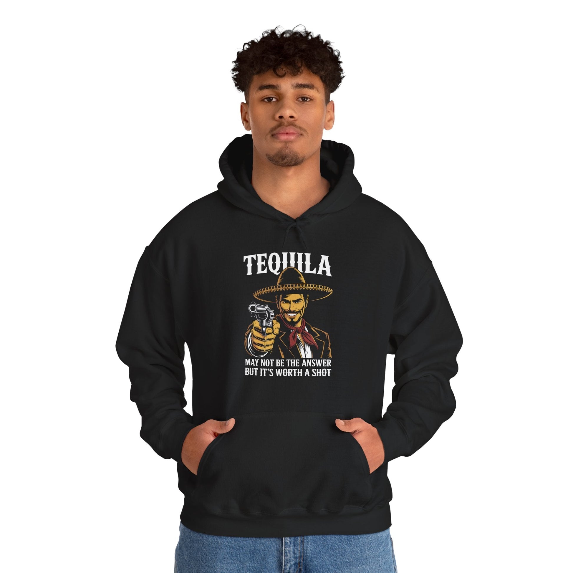 Stay cozy and stylish with this 'Tequila May Not Be The Answer But It's Worth A Shot' hoodie. Perfect for those who enjoy a good laugh and a casual, relaxed vibe. Great for wearing at casual events, parties, or just lounging at home. Ideal for adults looking for a humorous and comfortable hoodie.