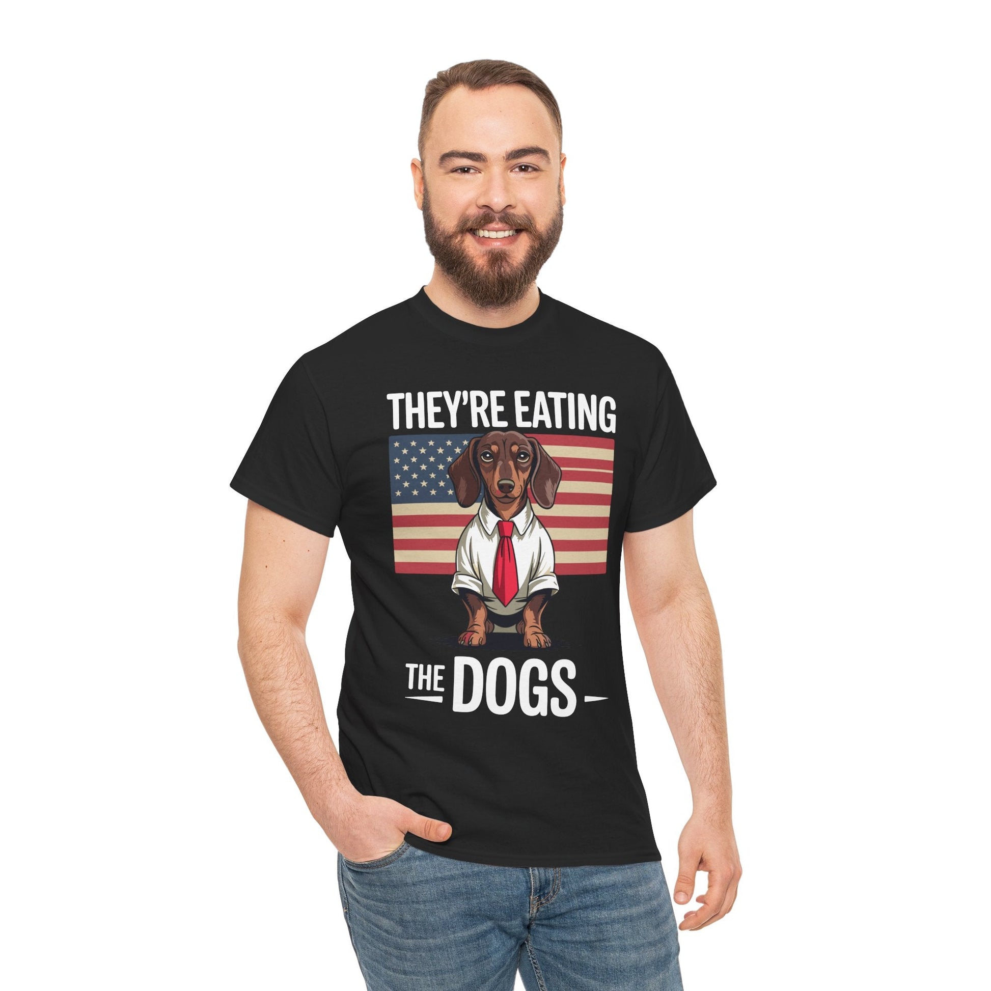 Did he really say that? Yes, and now you can wear the moment that left America speechless. The They’re Eating the Dogs Trump Hot Dog T-Shirt turns a jaw-dropping debate quote into a hilarious, head-turning piece of political satire. Whether you're a fan of absurd humor, political commentary, or just love a good hot dog pun, this tee is your ticket to standing out and speaking up.