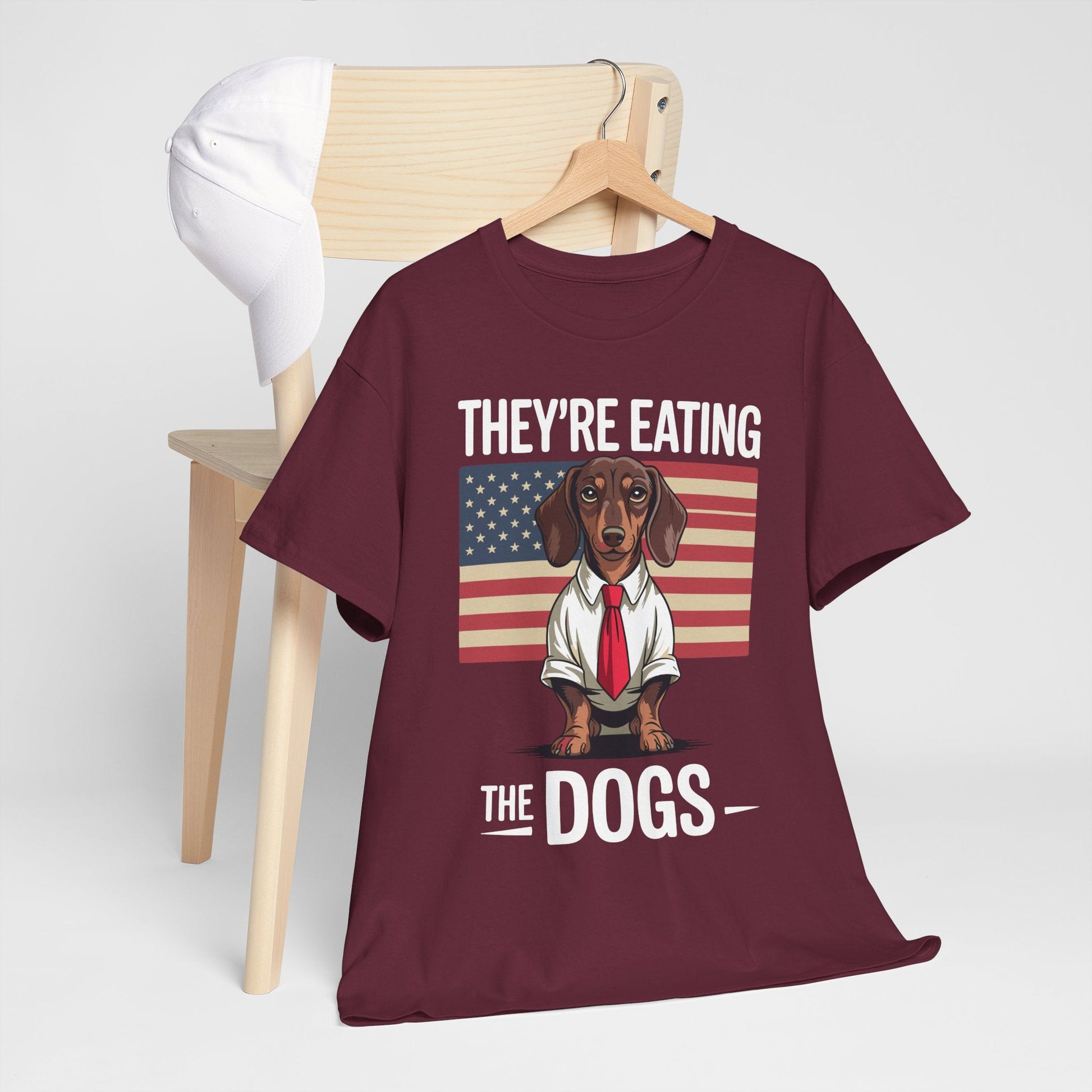 · Iconic Debate Quote Design: Features a parody of Trump as a dachshund hot dog with the phrase “They’re Eating the Dogs”—a viral moment from the 2025 debate that’s now immortalized in cotton.
