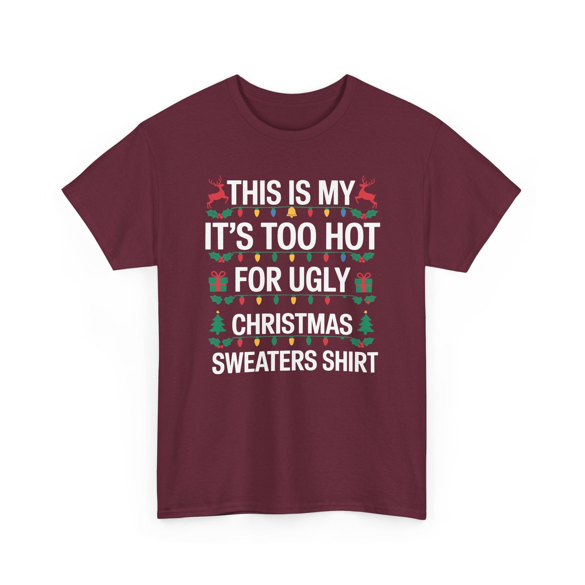 Too Hot for Ugly Christmas Sweater Funny Xmas Women Men T-Shirt