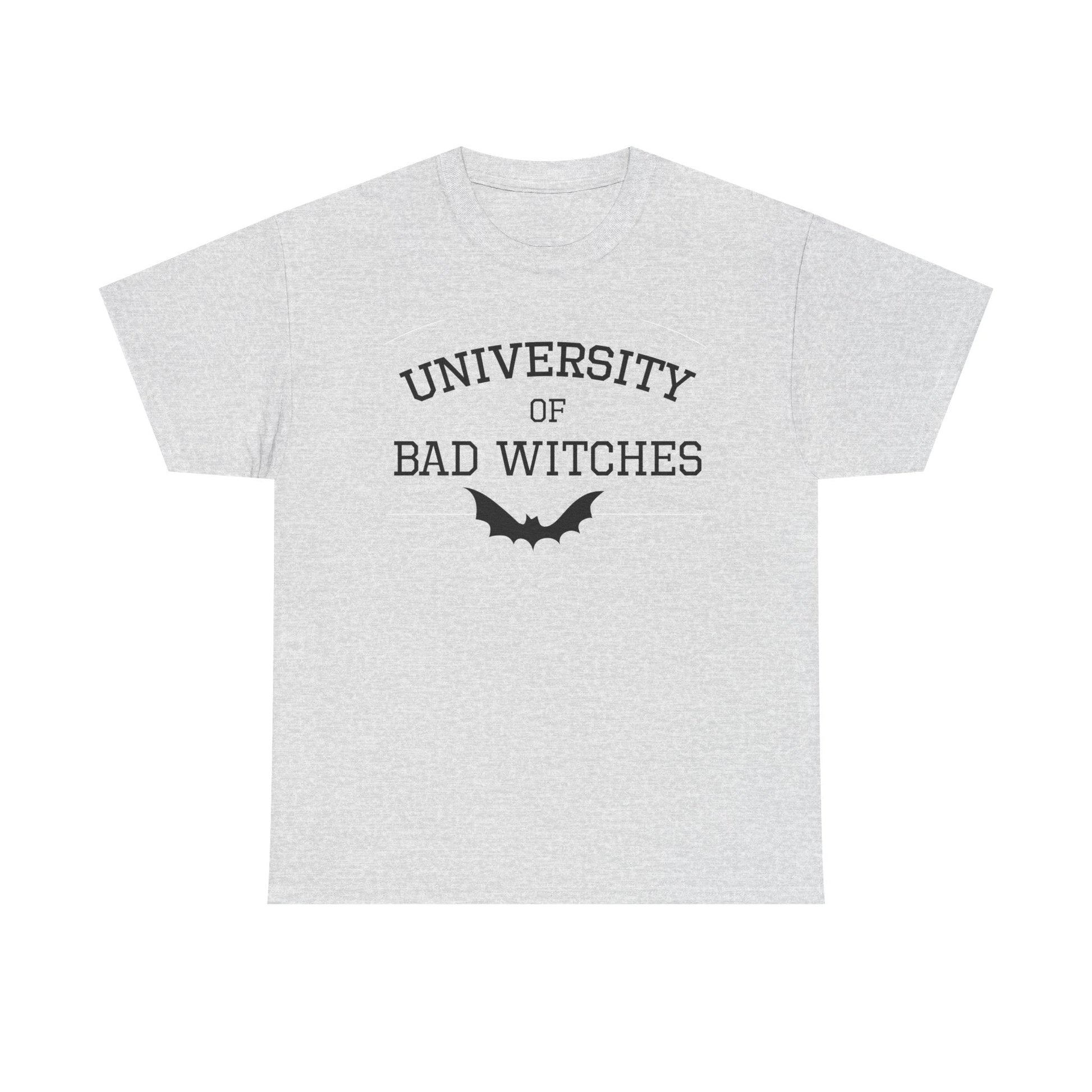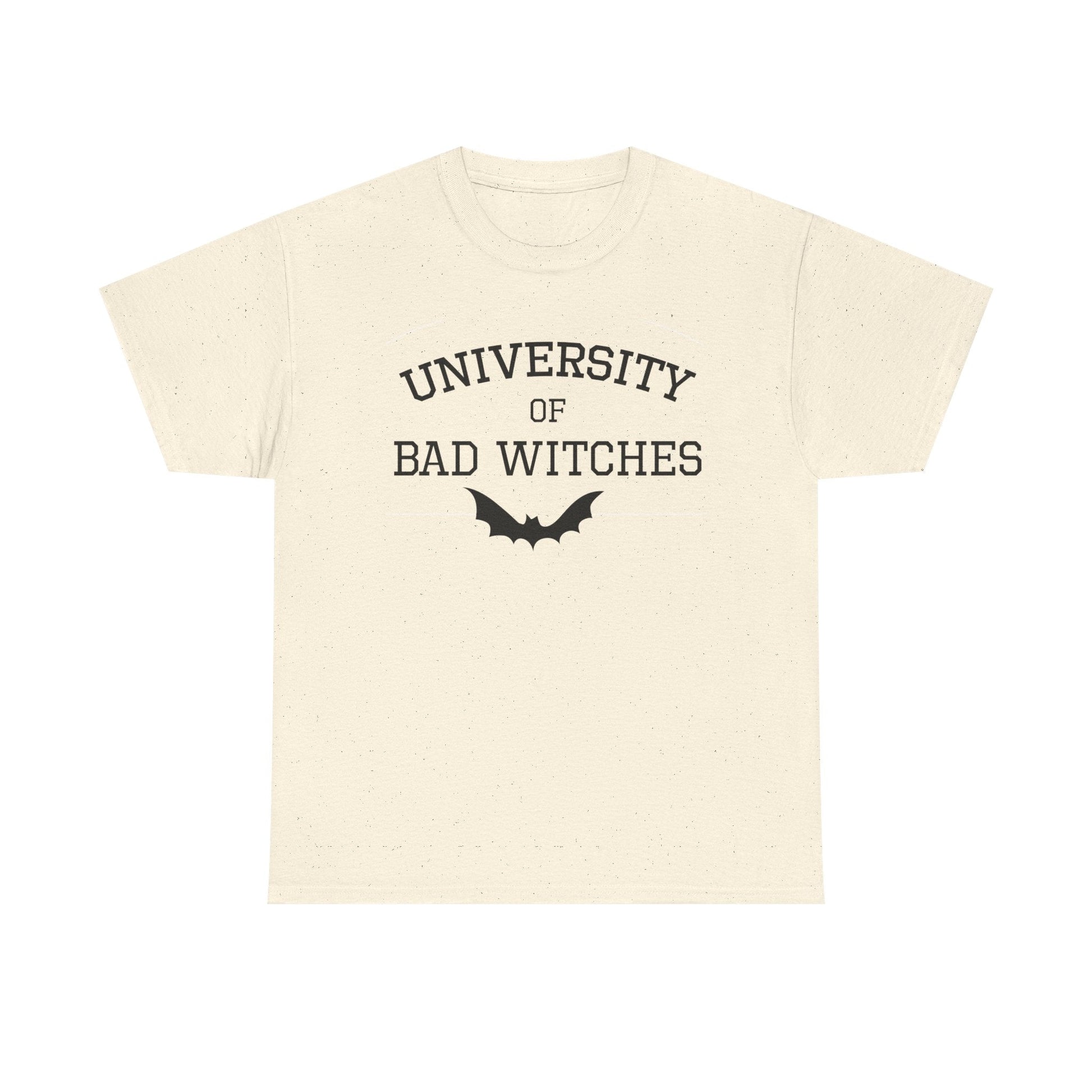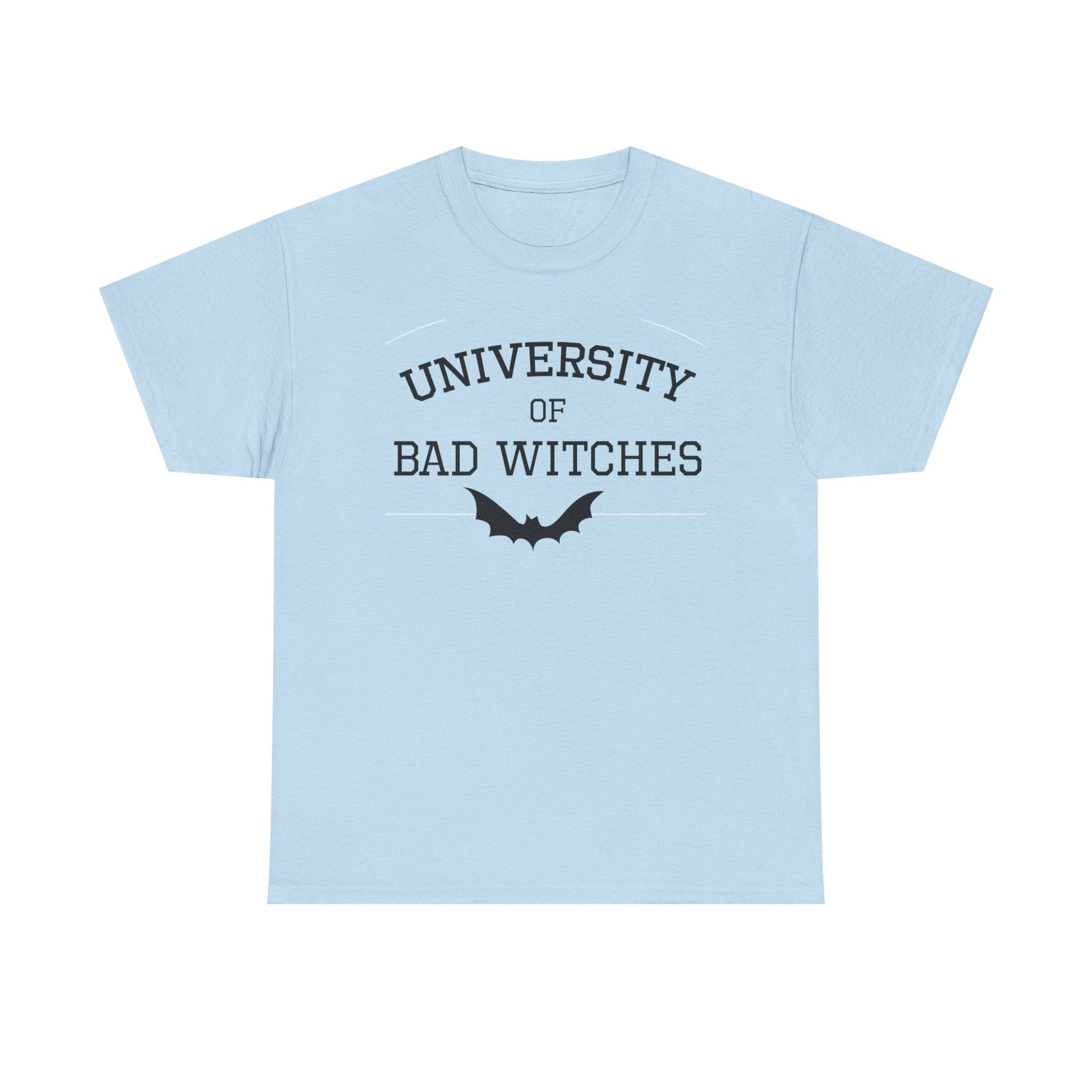 Embrace Your Inner Witch: With the playful "University of Bad Witches" design, this shirt speaks to those who aren’t afraid to explore the darker, more mysterious side of life. Perfect for any witch or witchy soul who loves a little humor with their magic.