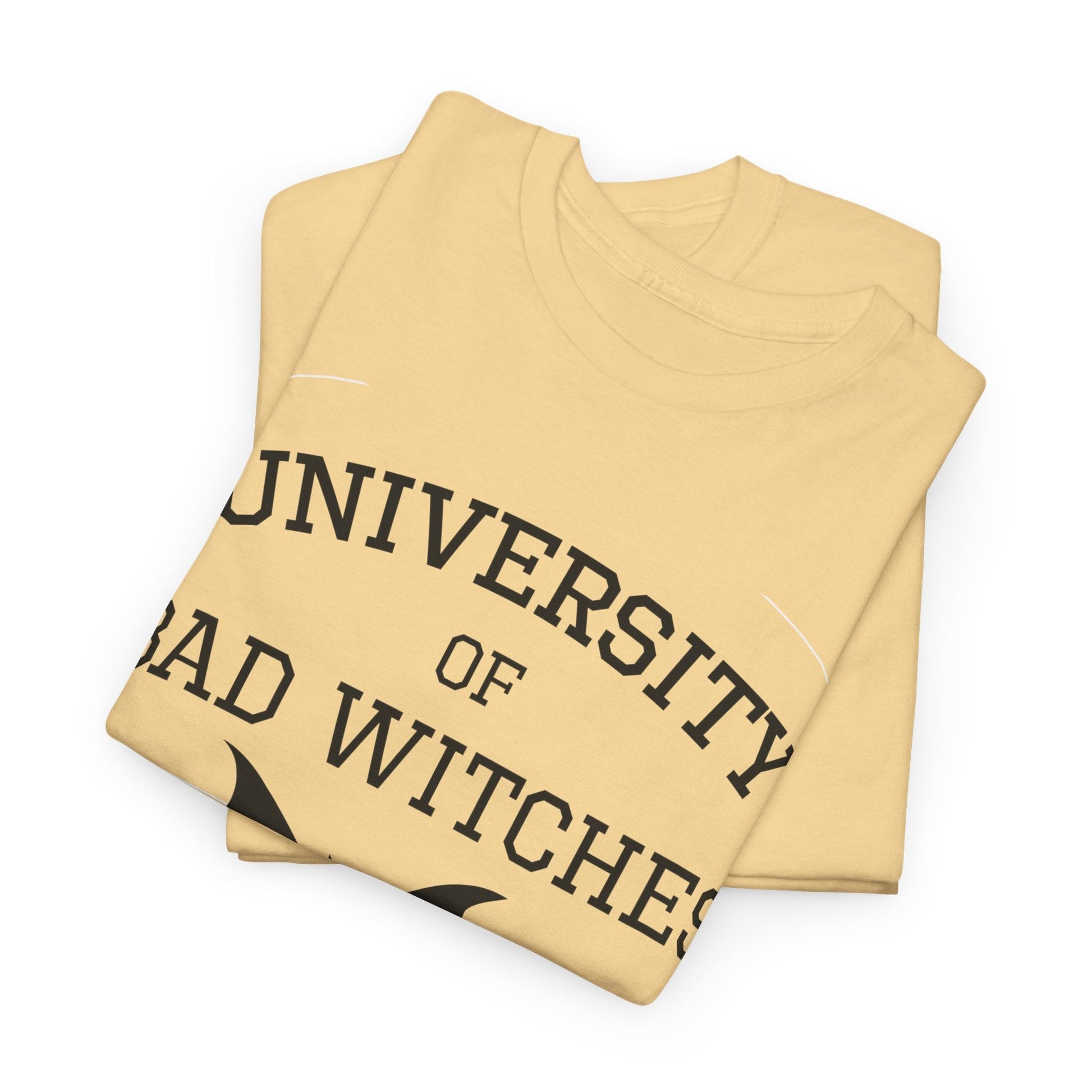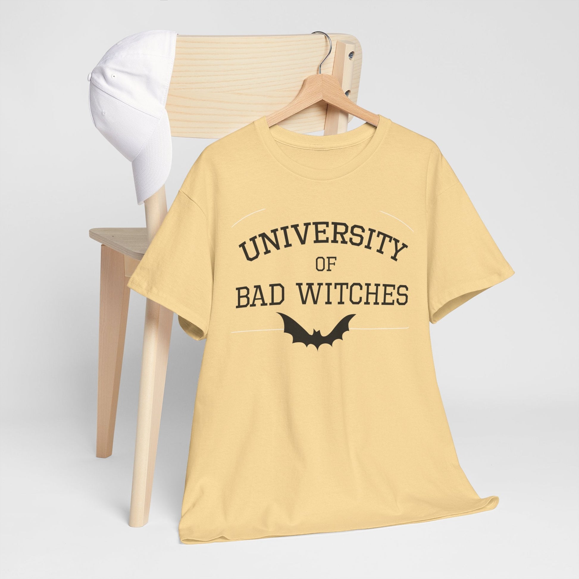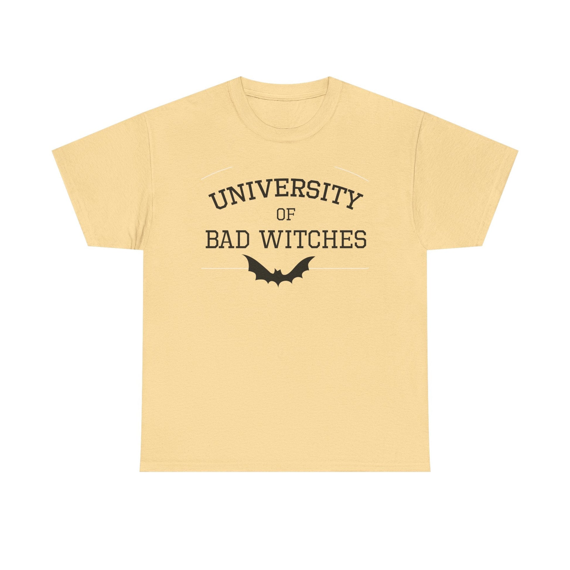 Embrace Your Inner Witch: With the playful "University of Bad Witches" design, this shirt speaks to those who aren’t afraid to explore the darker, more mysterious side of life. Perfect for any witch or witchy soul who loves a little humor with their magic.