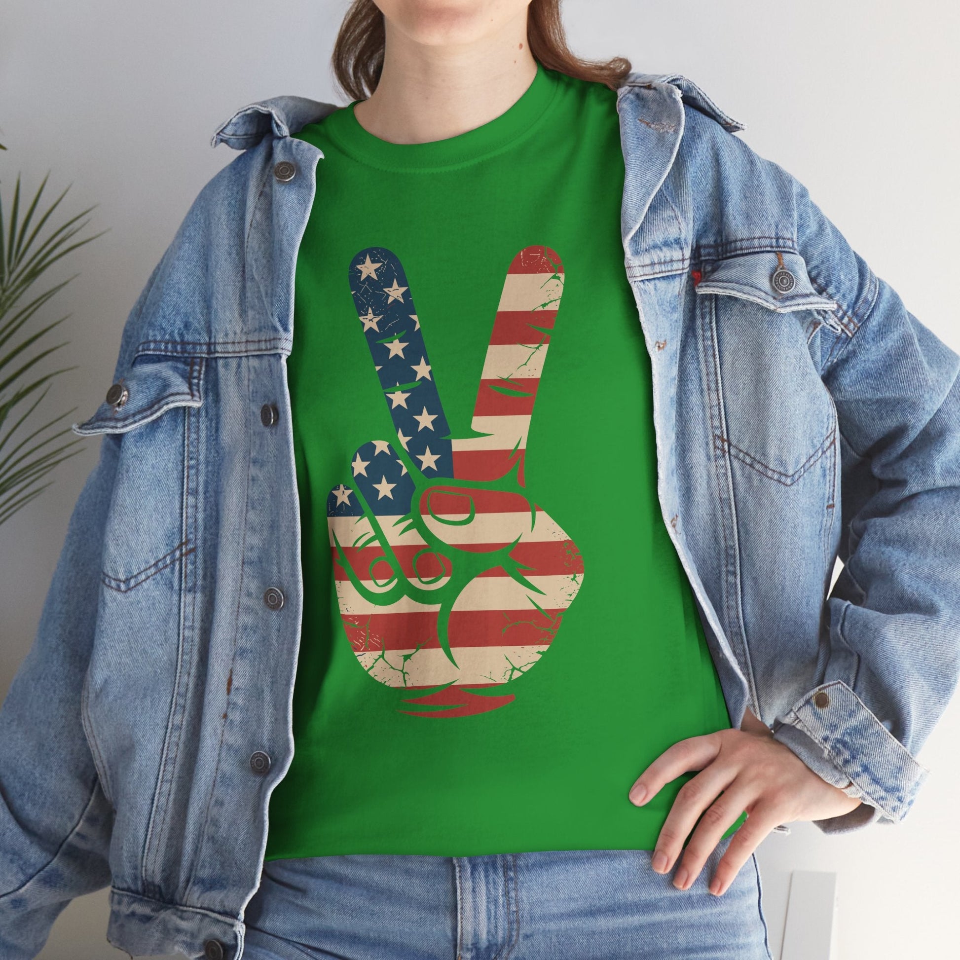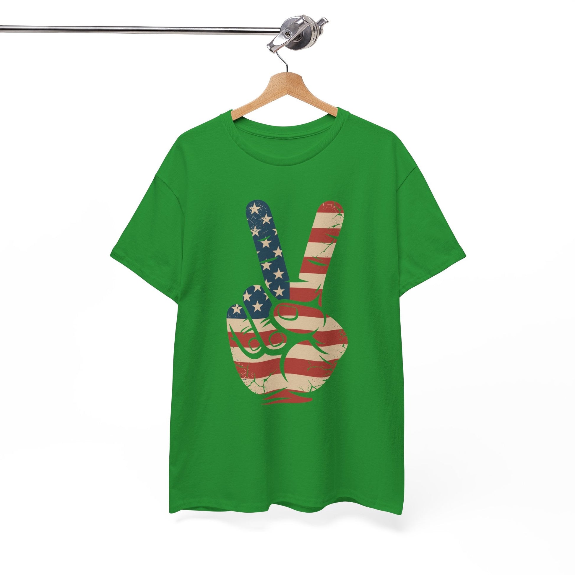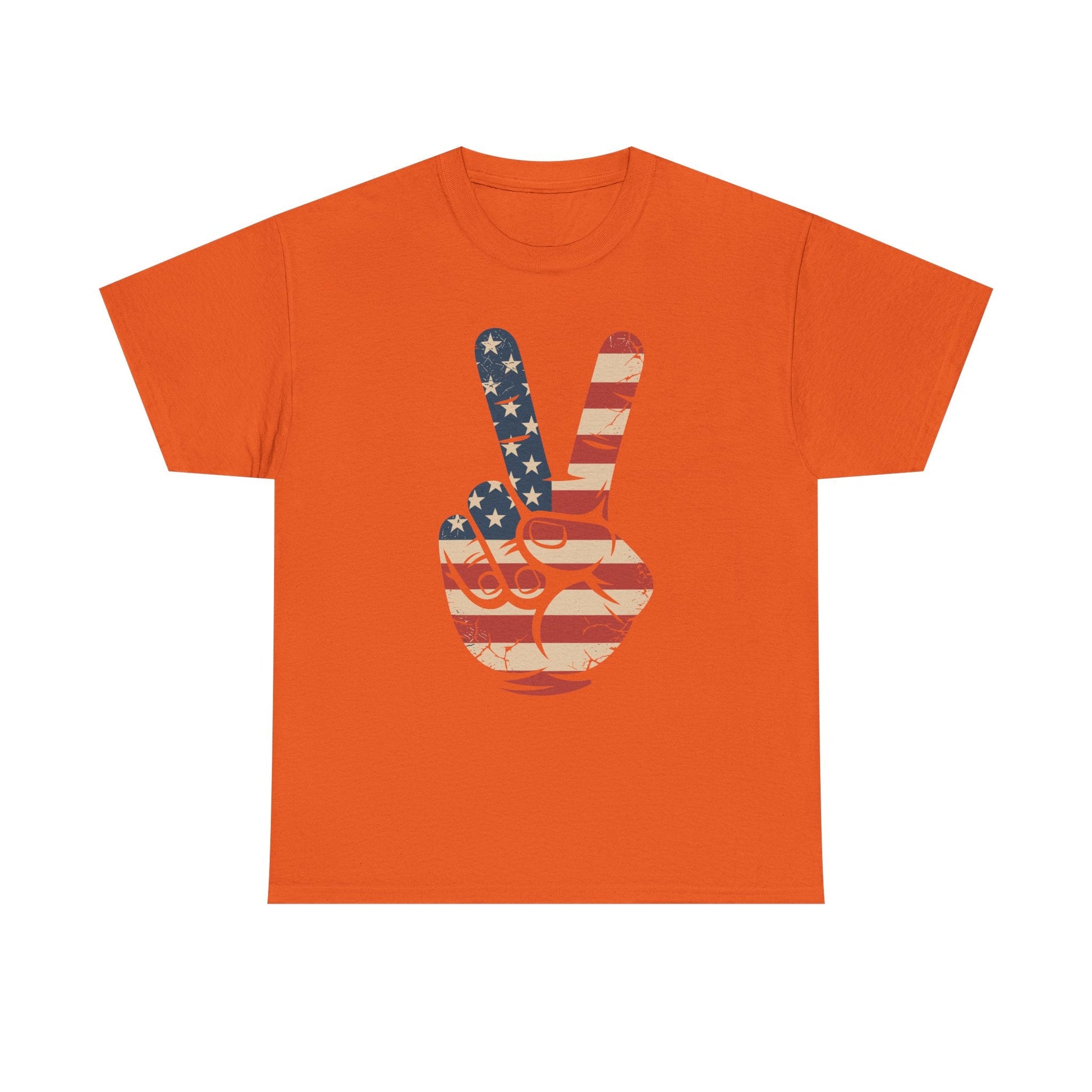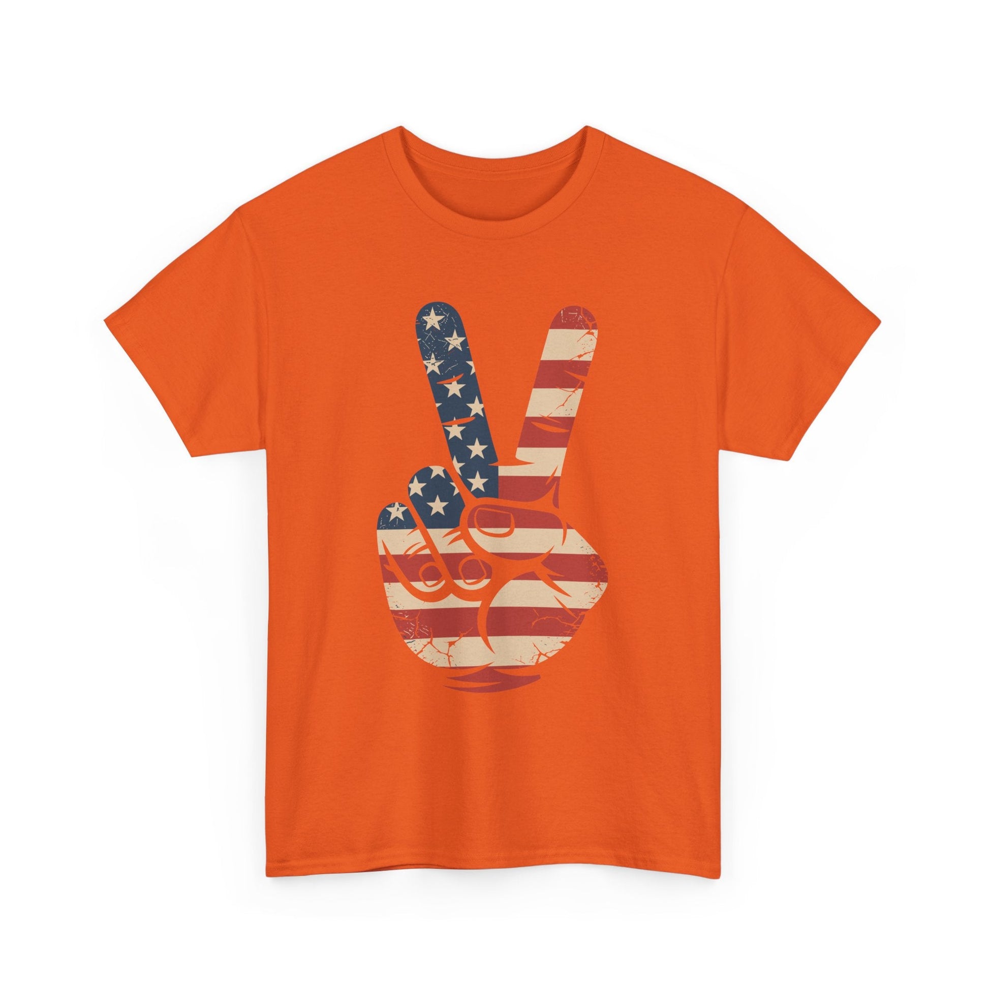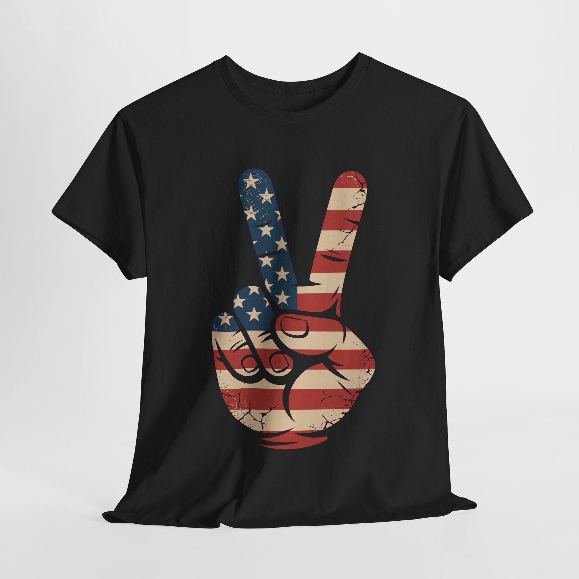 USA Flag Peace Sign Hand 4th of July Patriotic Men Boys T-Shirt