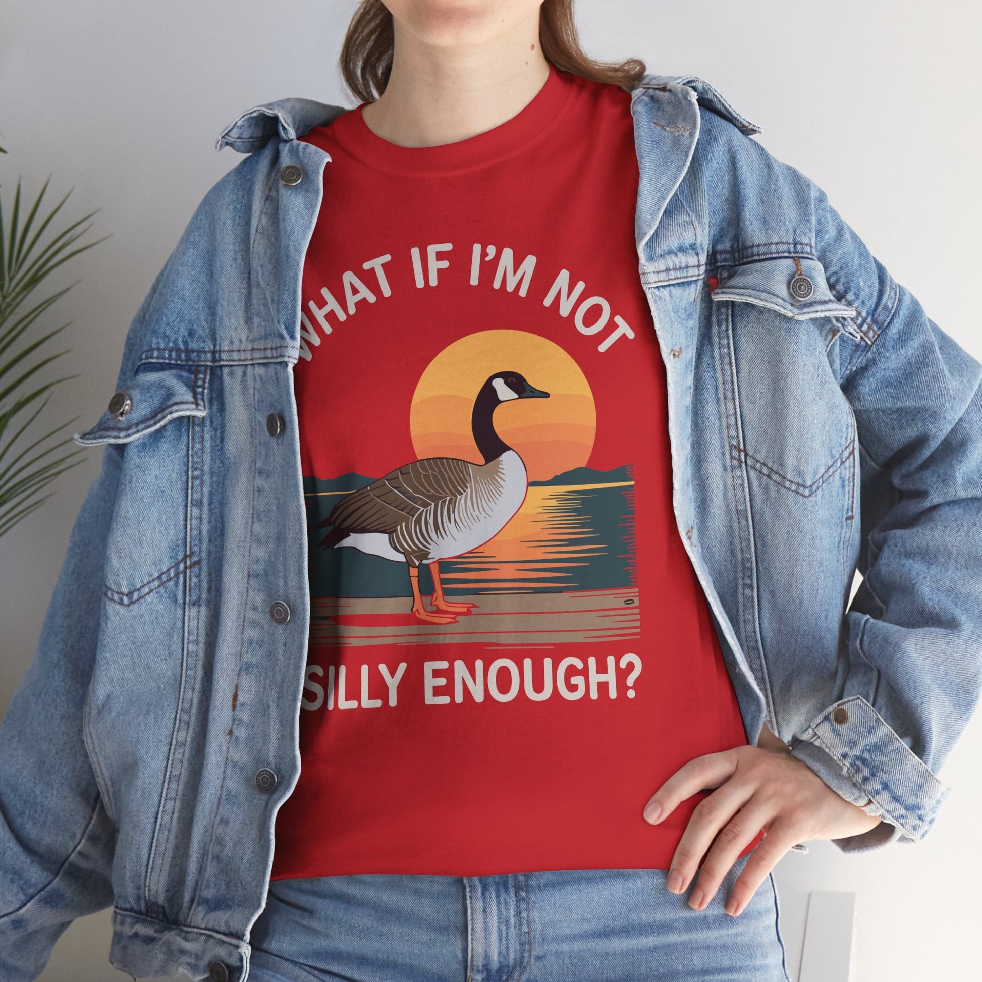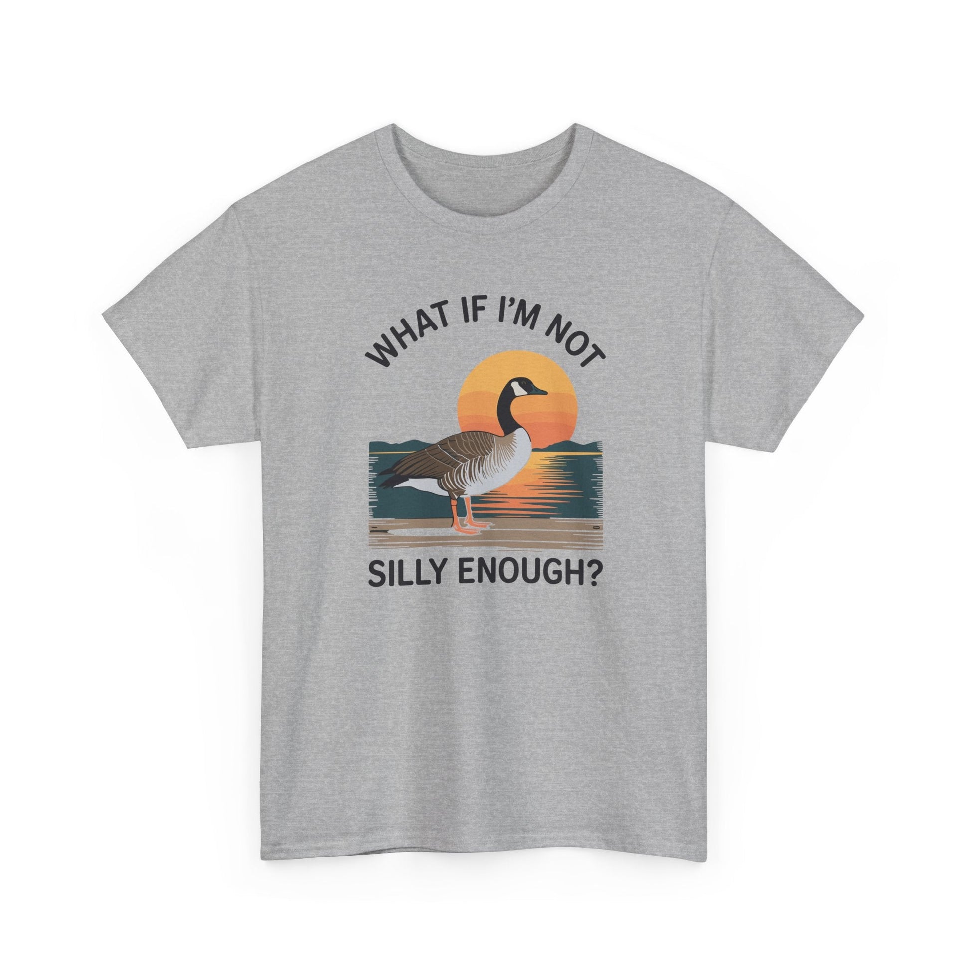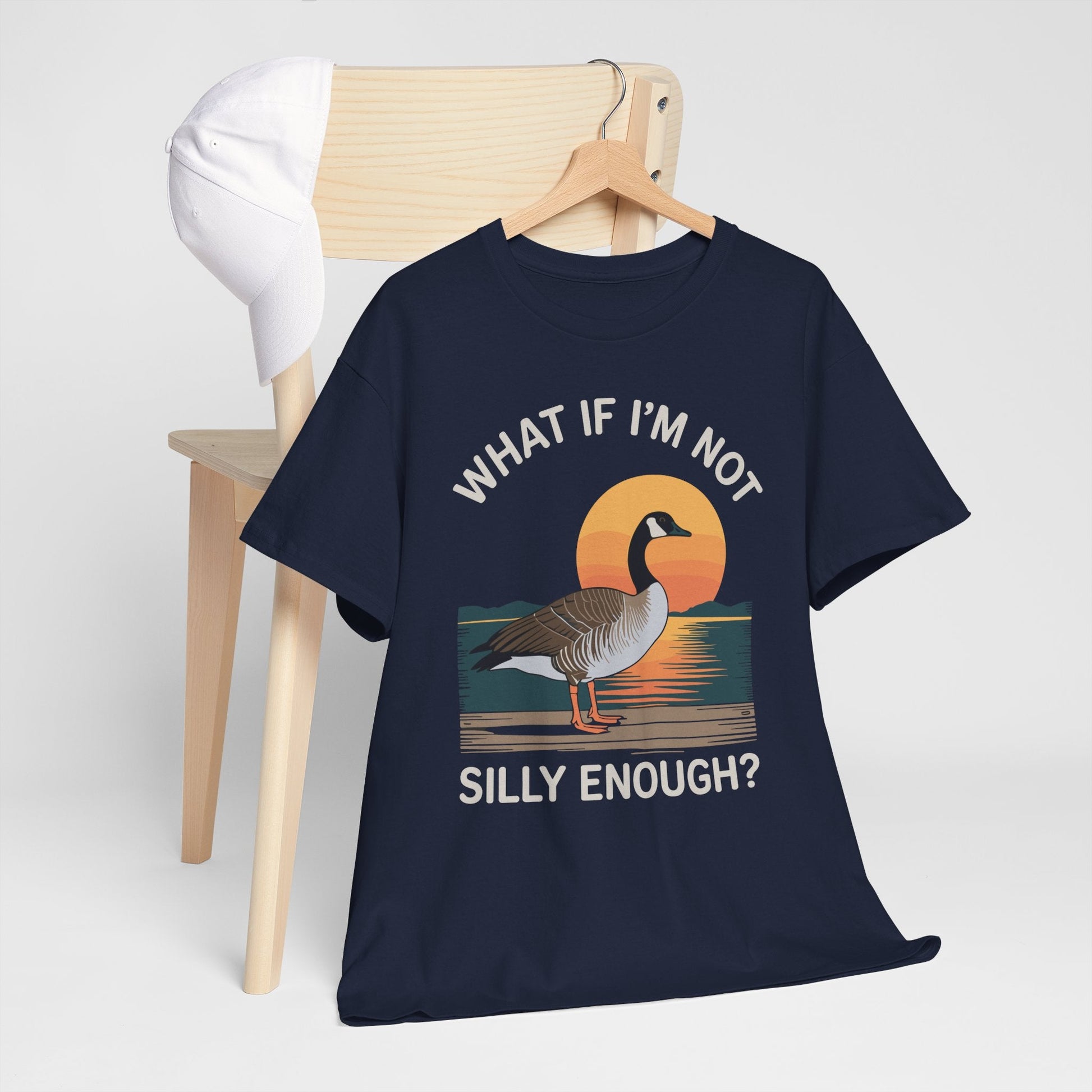 Ever wonder if you're just not silly enough for this world? This tee dives headfirst into the absurd with a goose-duck hybrid pondering life’s most ridiculous question. Whether you're a meme connoisseur, a bird nerd, or someone who thrives on awkward humor, this shirt is your ticket to turning heads and sparking giggles.