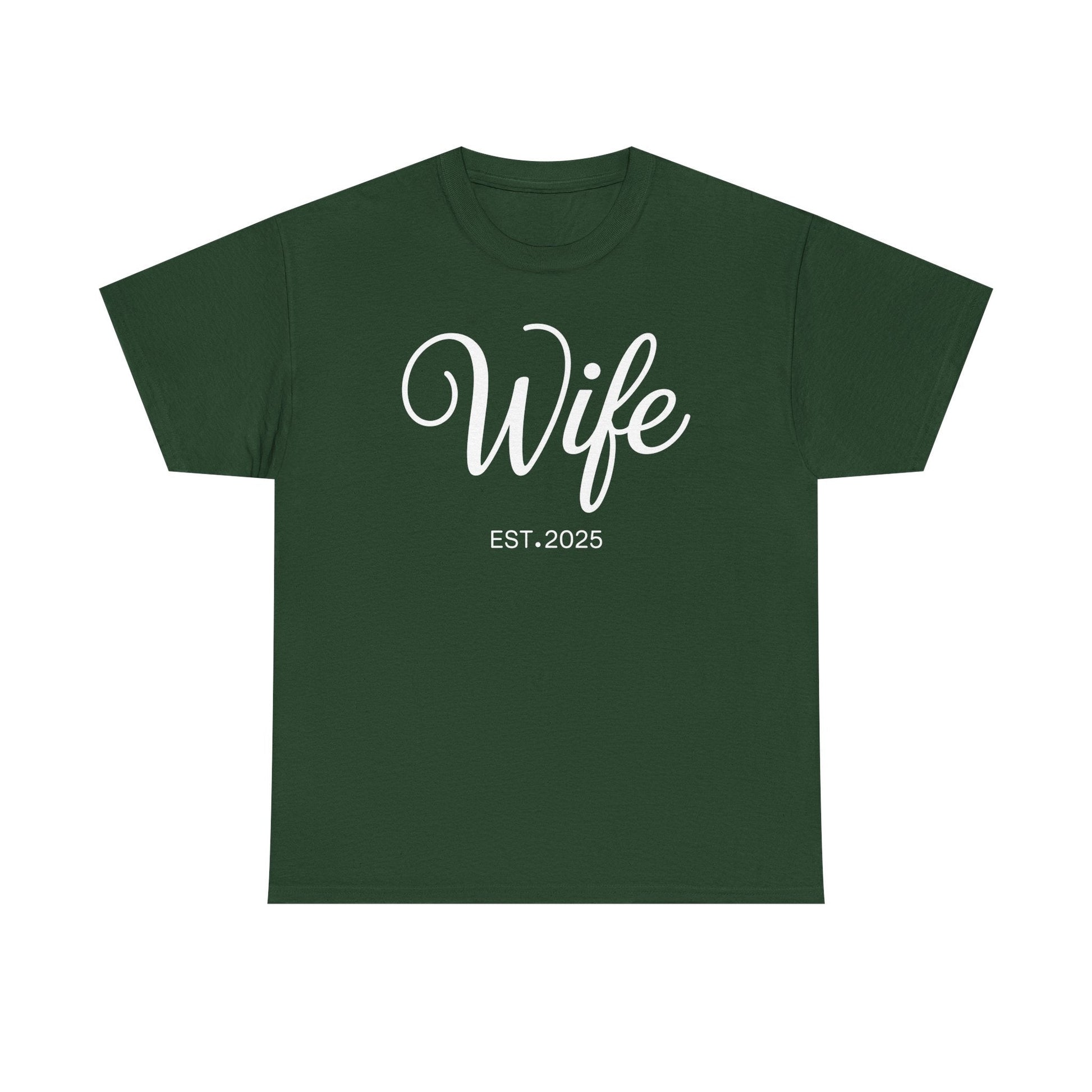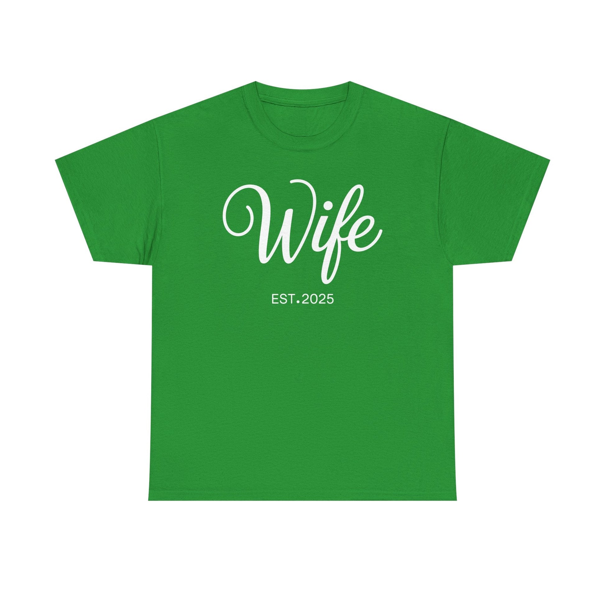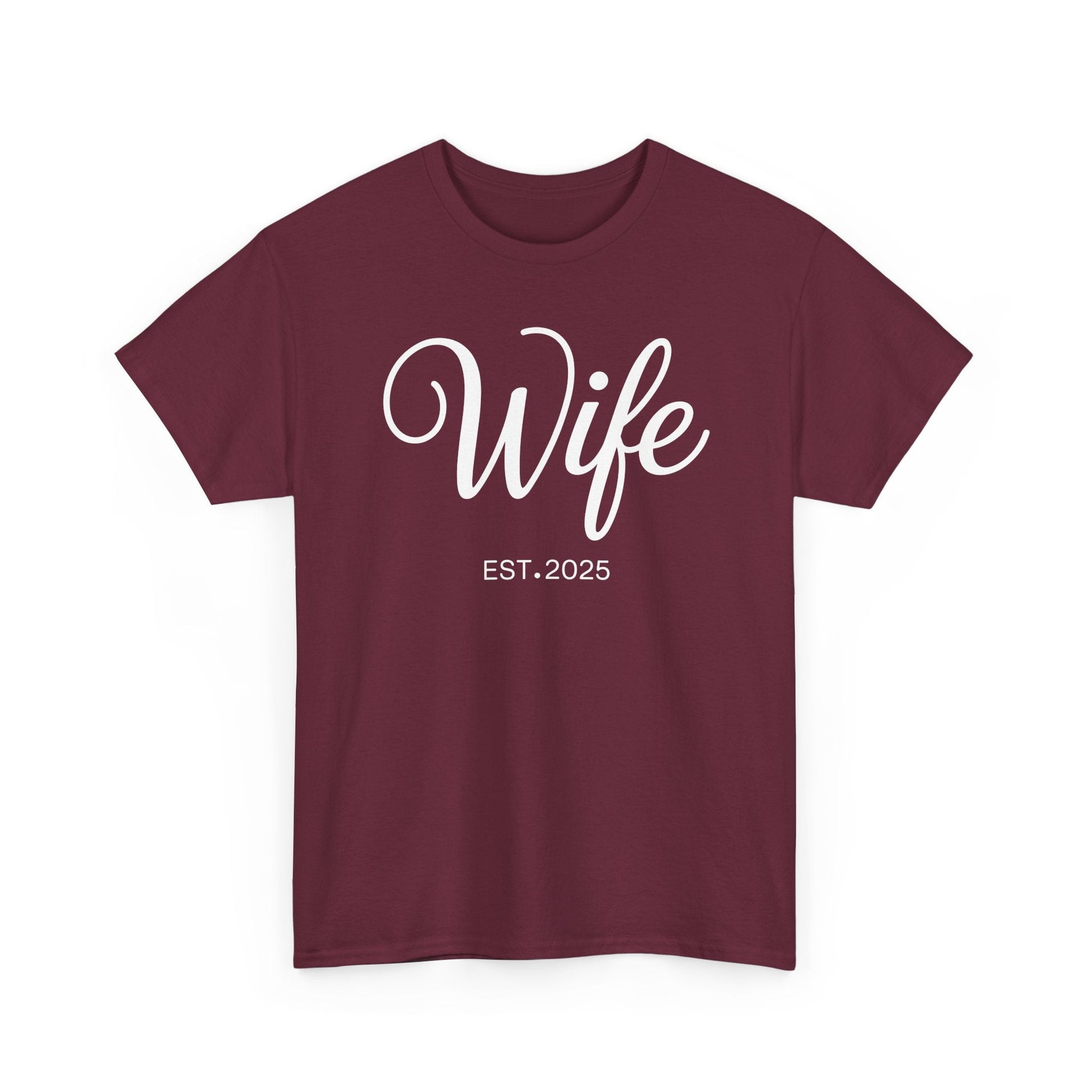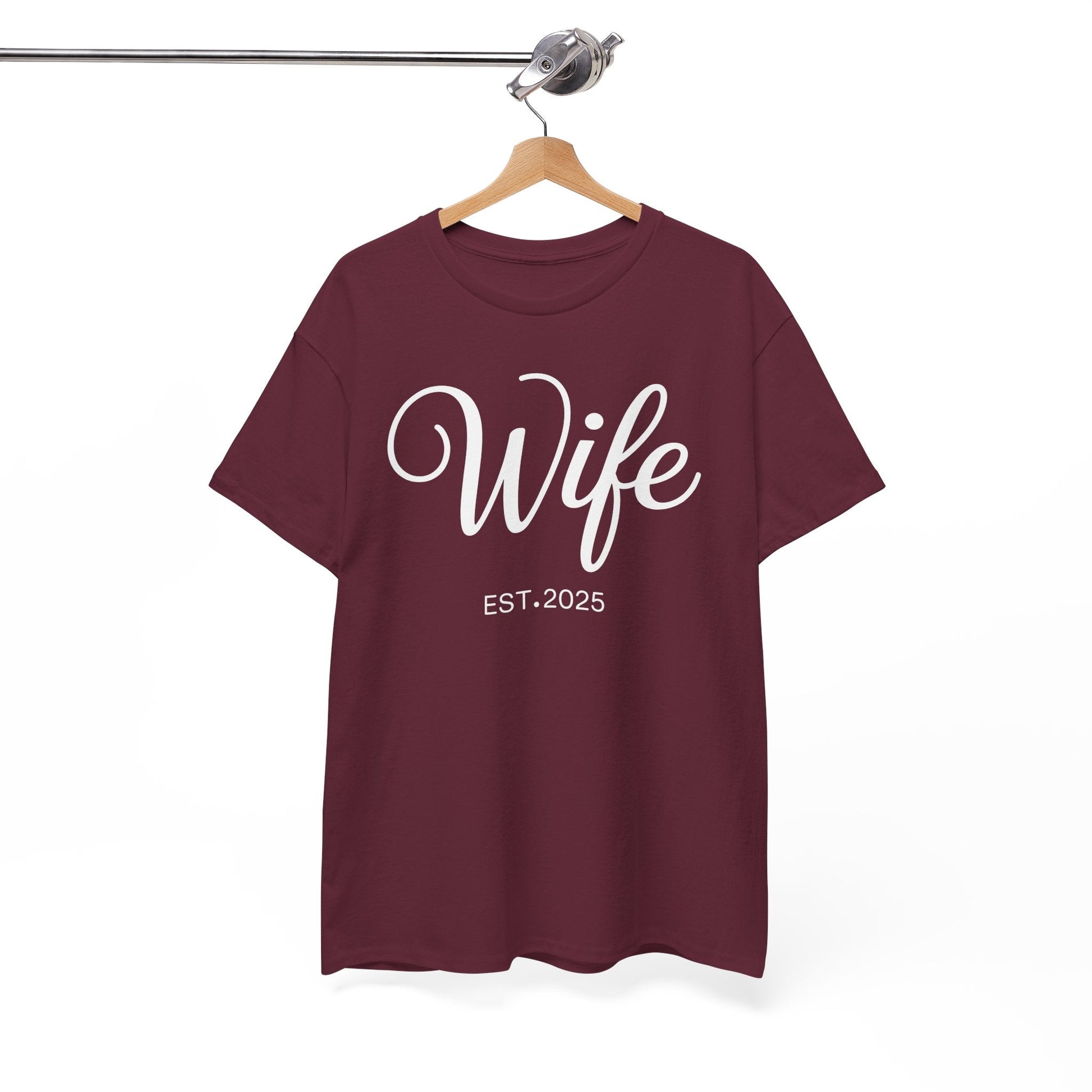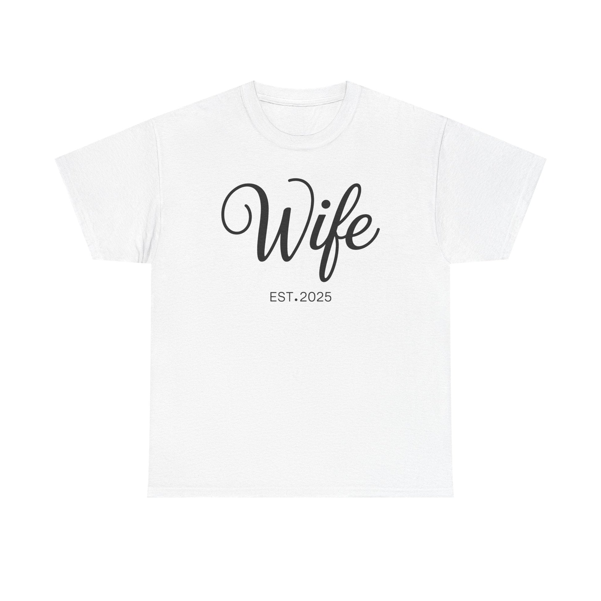 Just married and ready to flaunt your new title? This “Wife Est 2025” T-shirt is the perfect way to celebrate your love story with a wink and a smile. Whether you're honeymooning, heading to a post-wedding brunch, or just soaking in newlywed bliss, this tee adds charm and personality to your wardrobe.